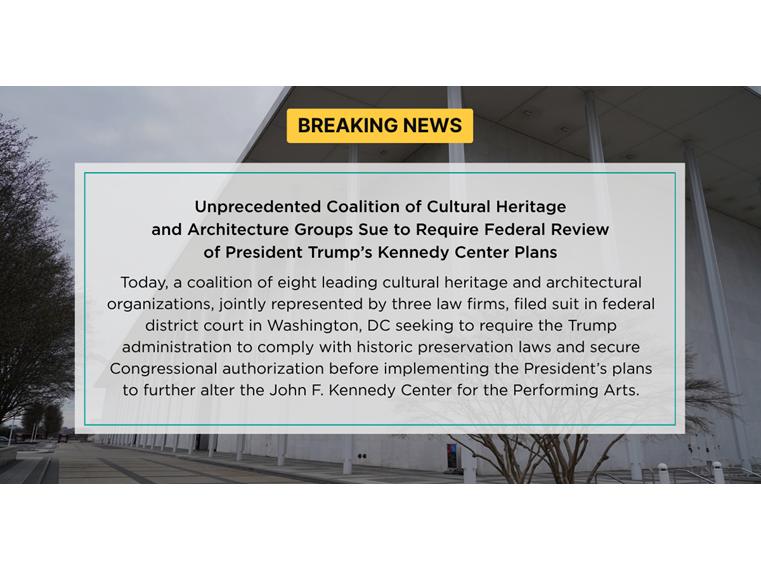 Unprecedented Coalition of Cultural Heritage and Architecture Groups Sue To Require Federal Review of President Trump’s Kennedy Center Plans
