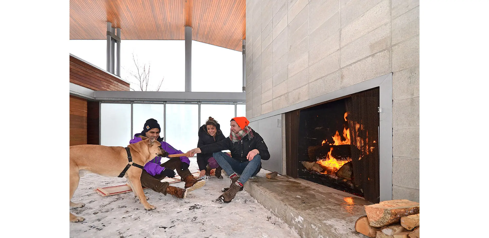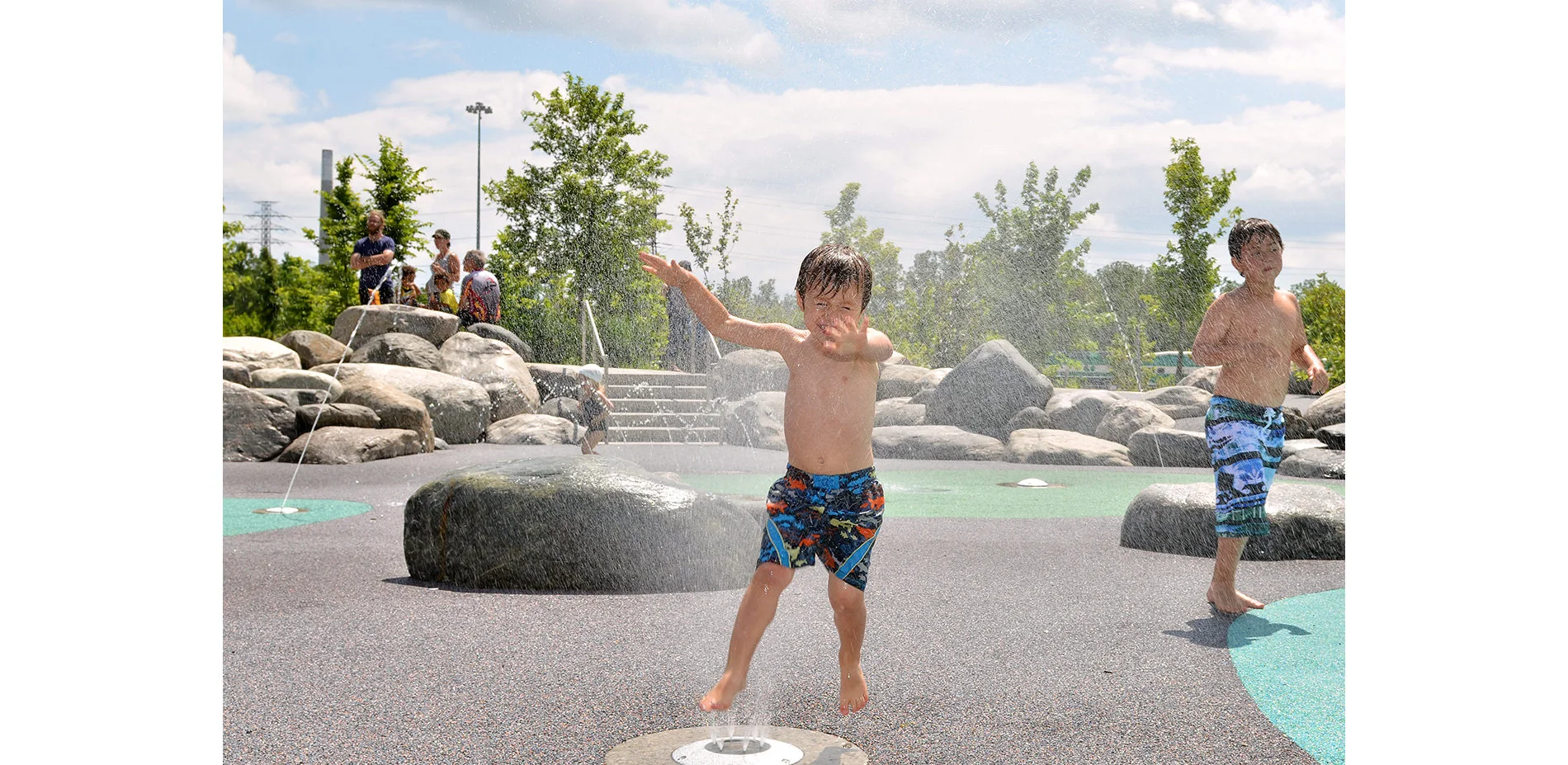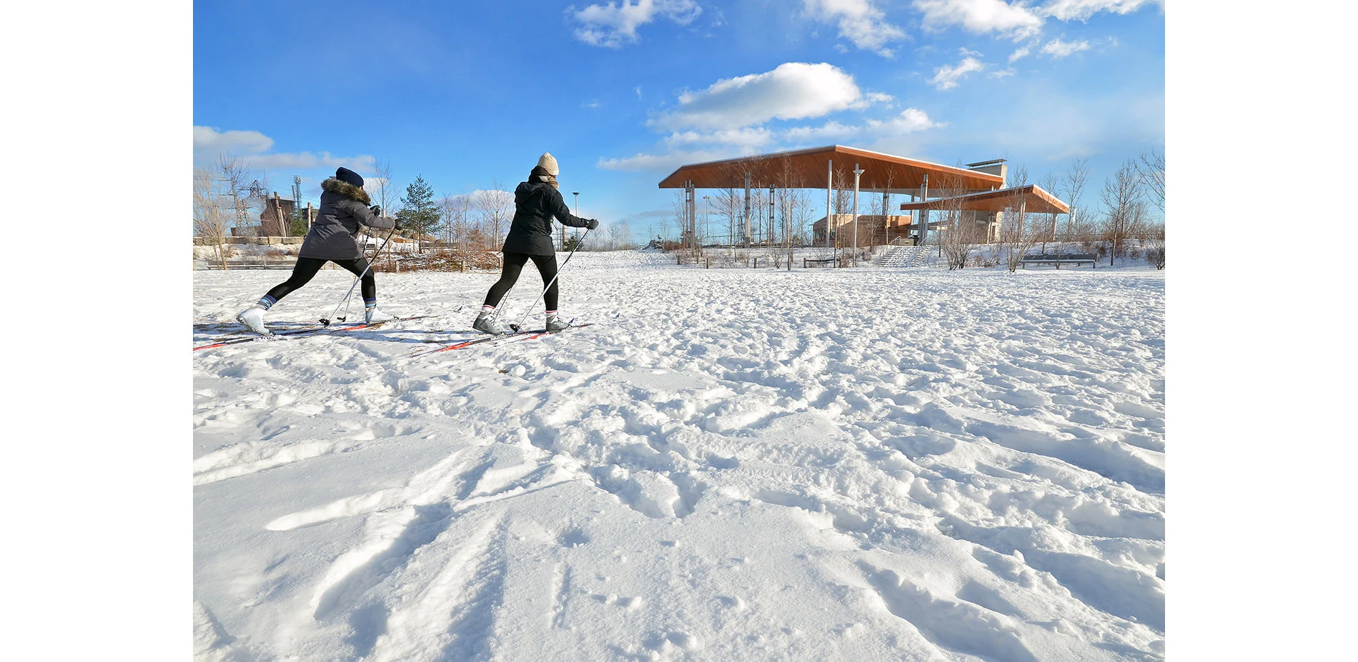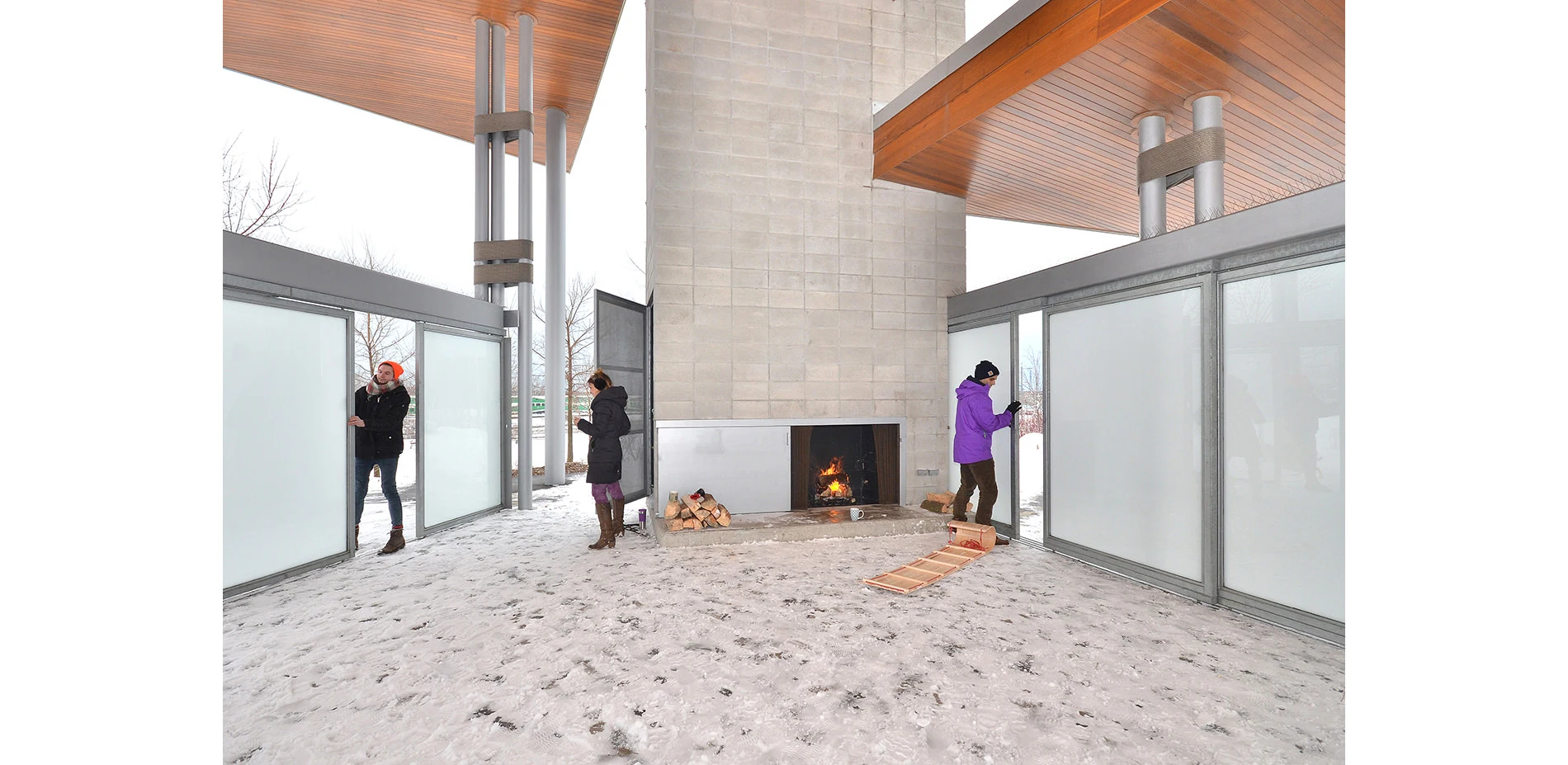 On the flood-protected side, a central lawn demarcates a separation between passive recreation (enjoying the constructed nature) and active (e.g., using a playground). Year round, there are opportunities for children and adults of all ages to enjoy the outdoors. A pavilion with a fireplace provides shelter and warmth in the coldest months. Densely planted perennials attract an array of butterflies and other pollinators in the spring and summer. The park also transforms unappealing industrial views—of the infrastructure-heavy corridor adjacent to the Don River, with its rail yards, high-tension lines, and Don Valley Parkway—into an engaging spectacle because this corridor is now being observed from high, detached vantage points.