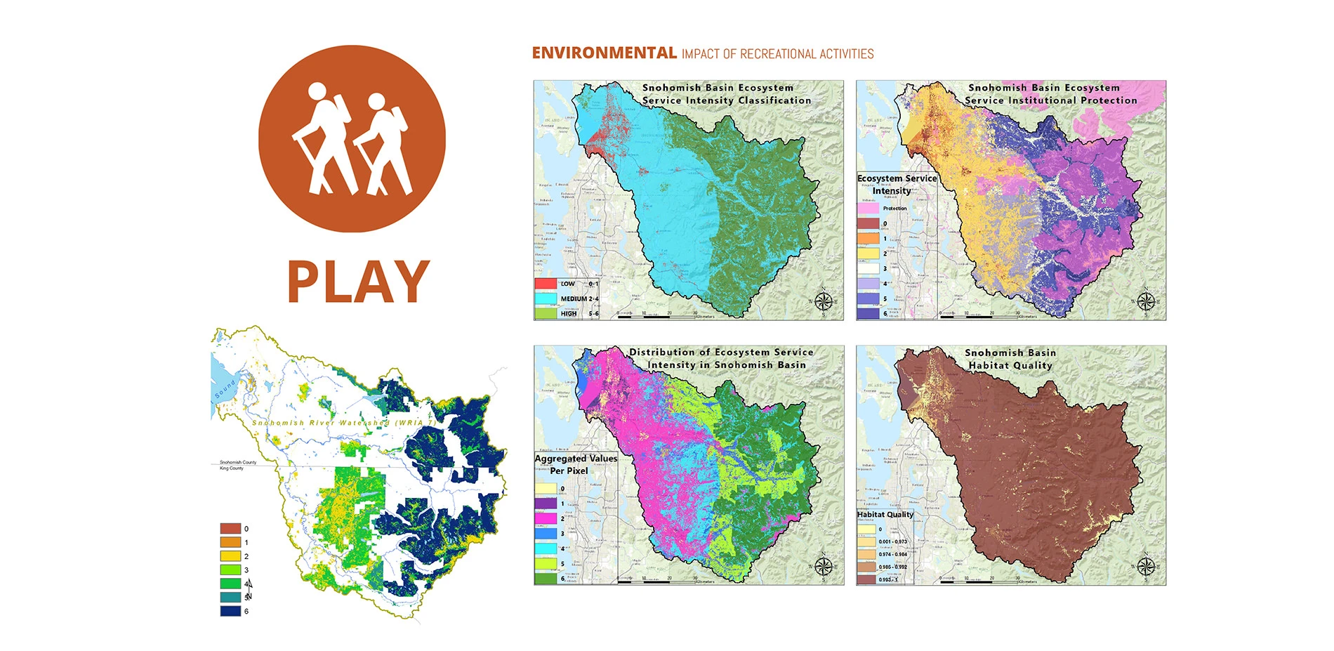 For the highly populous Green-Duwamish Watershed Strategy, we employed an intensive expert-engagement process of interviews, focus groups and open houses in a “Listening” phase to establish a thorough baseline of existing conditions, initiatives and plans. The project’s Watershed Advisory Group identified priority foci for the watershed strategy as social equity, a comprehensive approach to connected open space, and integration of stormwater planning. For the Snohomish WOSS, our staff mapped extensive GIS data and identified ecosystem service “hot spots” to inform subsequent planning. We then worked with county, state, municipal and non-profit planners to create and evaluate spatial scenarios, to understand the multiple benefits of potential collaborative actions and proposals.