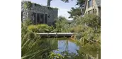 Our design focused on the severity of the site and the limited rainfall. We incorporated a number of ideas for water conveyance. Most of the roof runoff is collected and stored in a 42,000 gallon cistern, buried under the driveway. This water is used throughout the summer to replenish the pond, fountains and for irrigation.