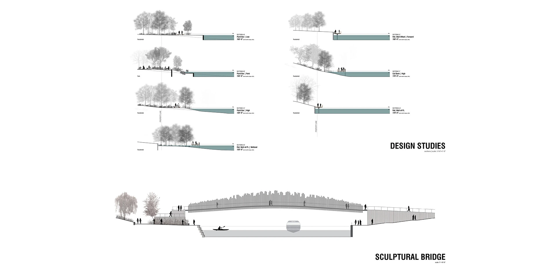 I was captivated by the graphics that explored an innovative river trail program that would connect communities. They provided different examples of what they were dealing with and came up with well-designed solutions. The project, once implemented, would introduce people to places that might otherwise be inaccessible. Quite compelling