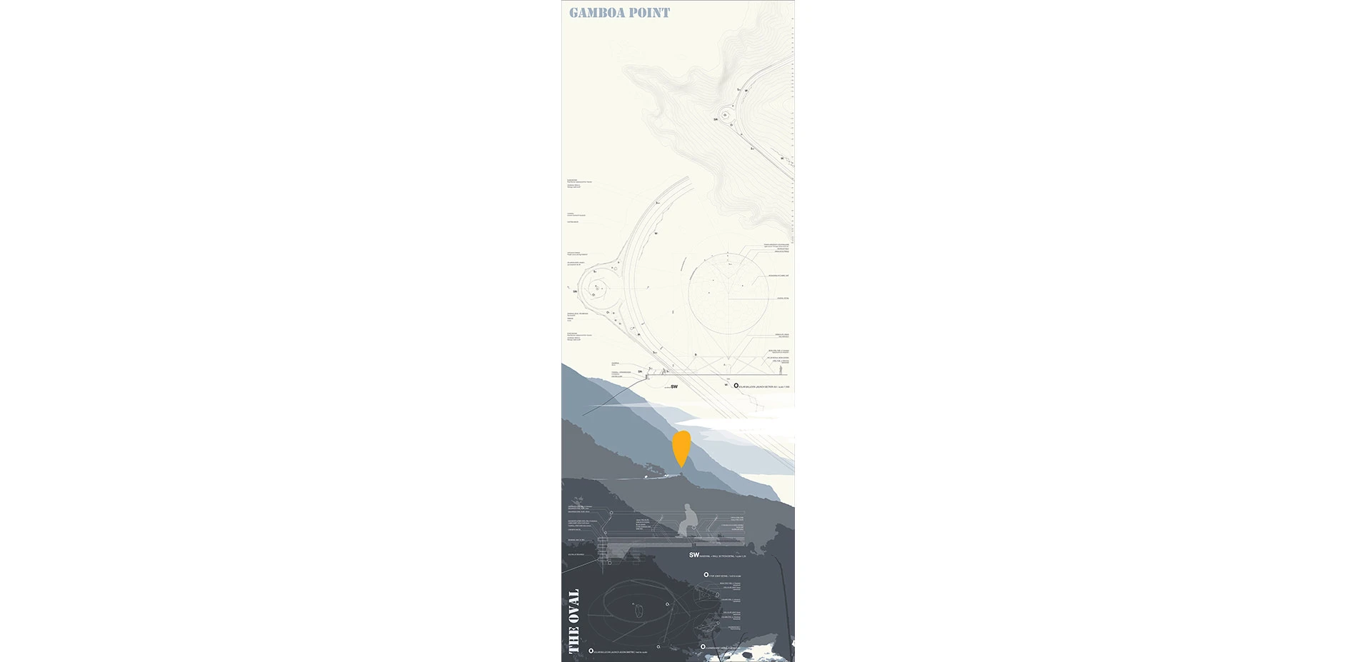 3. Gamboa Point. The Oval. If Square Black Rock and the Light Structured vista points are the main highlights at night, the Oval Outlooks will become the main reference points during daytime. The Oval is configured to create an anchor point for large balloons who act as picturesque 'eyecatchers', turning these places into important follies along the road.