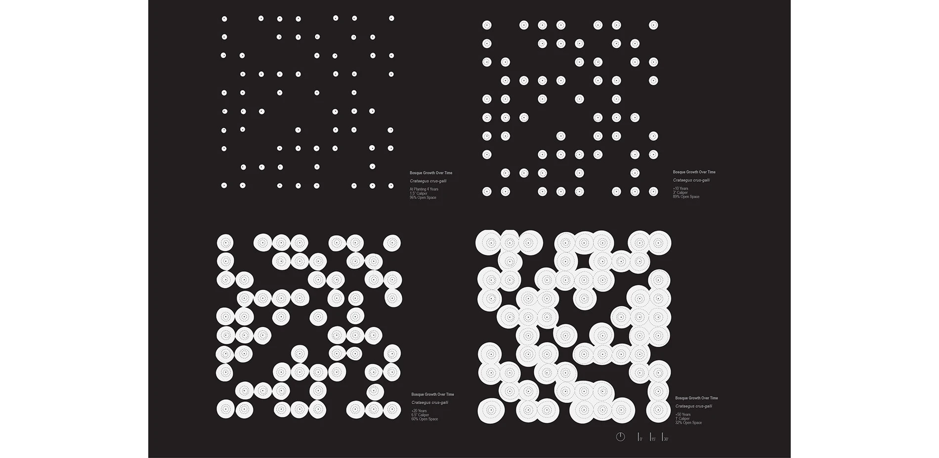 It is the goal of this project to serve as an inspiration to landscape architecture students, landscape architects, allied disciples in engaging complexities of trees in landscapes as significant agents of critical design practice and experience. The process taken to create this exhibition served as a learning tool for understanding these concepts, but the end products in 2d and 3d form are made intentionally visible so that others may learn from what they see. Through this approach to understanding planting design, new investigations can take place to see things in a new way that may enhance our understanding of successful and unsuccessful landscapes from which we currently may only be looking at what we see, but may in fact reveal more upon a closer look.