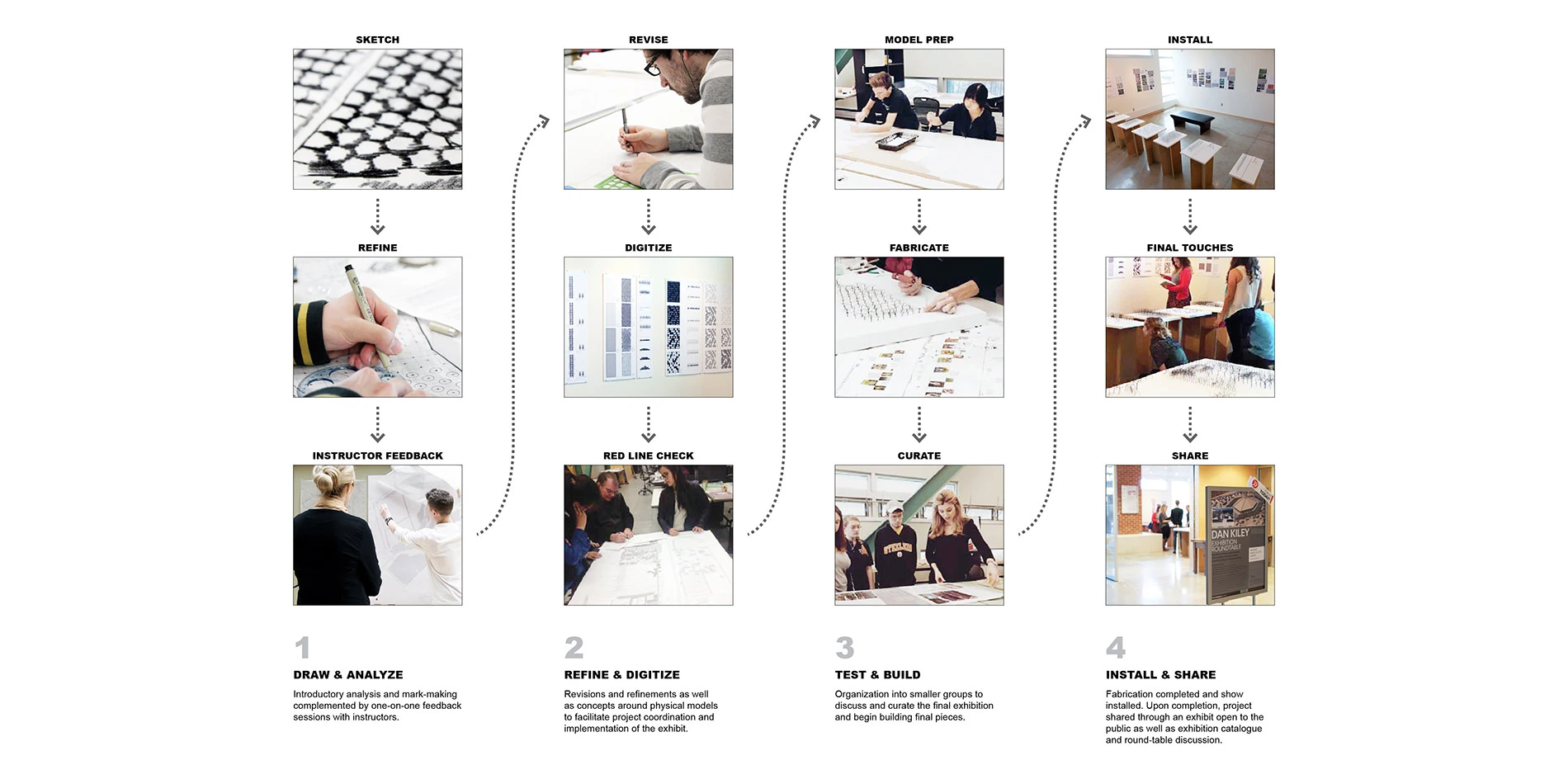 The feedback from visitors to the exhibition and roundtable revealed that the project raised awareness and excitement for learning about trees, how they shape space, and the overall experience of place. Projects such as this one can teach us about planting typologies, the importance of species selection, and planting design techniques for creating spaces, or living environments and the communication of these lessons learned may provide new ways of interpreting, analyzing and discovering exemplary historical works in the field. In addition, we can enhance our own understanding of, appreciation for and attention to the power of landscape architecture and in particular trees to open up possibilities and opportunities for others to also test new ideas for assessing, observing, analyzing, and ultimately making his or her own their own 2d and 3d projects. -