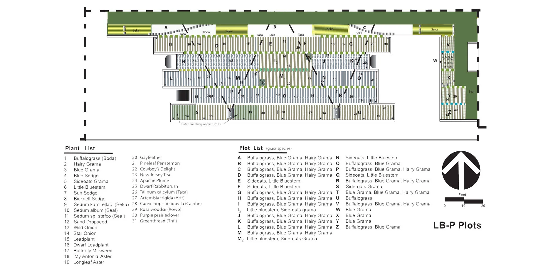 - At LB-P spring sown buffalograss in 6-inch rows met 80% coverage in one growing season.