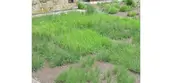 While vegetated layers on green roofs must adapt to extreme temperature, drought, and wind, they must also quickly cover and stabilize growing substrates. After establishment, plants must limit wind scour and self-heal gaps with creeping and rooting stems or by reseeding. Currently mono-generic, creeping species of Sedum, predominate on green roofs and are most often hand-plugged into substrate or placed via expensive pre-grown trays or mats. In a few cases Sedum is sown as live sprigs, but requires intensive establishment. Plugged Sedum, depending on its initial size and spacing, may take two years or more to meet the 80% FLL, industry coverage standard.