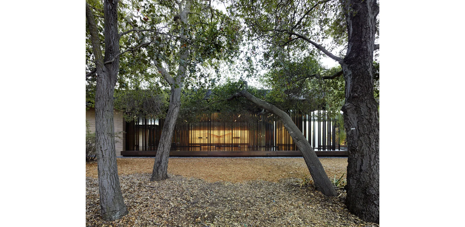 The Windhover Contemplative Center, named for a series of paintings by artist Nathan Oliveira, simultaneously functions as an art gallery, spiritual sanctuary, and contemplative garden on the busy Stanford Campus. Using Oliveira’s art as a vehicle for personal renewal, the center provides a place for students, faculty, and staff to decompress and re-center themselves. The integrated design capitalizes on the building’s unique context -- adjacent to an existing oak woodland – to provide a series of spaces that allow visitors to experience Oliveira’s paintings in concert with an inspiring natural setting. A collaborative approach to building and landscape shaped nearly every aspect of the design, from the carefully choreographed entry sequence; to the visual and physical permeability between the interior and exterior spaces; to the interplay between the building materials, light, and shadow. Windhover represents a new typology for institutional design, offering a lush, green sanctuary for viewing art and fostering personal well-being.