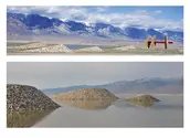 Owens Dry Lake is located in the Owens Valley on the eastern side of the Sierra Nevada Range in Inyo County, California. Unlike most dry lakes in North America’s Basin and Range Province which have been dry for thousands of years, Owens held significant water until 1913. To supply Southern California’s rapid population growth, the Owens River was diverted into the Los Angeles Aqueduct, causing Owens Lake to desiccate by 1926. The lake became the largest single source of dust pollution in the United States. Legislation passed in 1983 initiated a comprehensive dust mitigation effort. Since then, significant reductions in dust production have been realized through the implementation of mitigation measures (shallow flood, gravel cover, and managed vegetation) over engineered parcels on the dry lake playa.