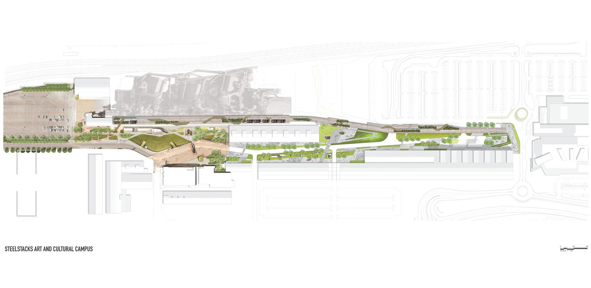 The SteelStacks Arts + Cultural Campus rose from the shadows of the former Bethlehem Steel Plant, invigorating the region through the transformation of an abandoned industrial site into a vibrant, urban, arts and entertainment destination. The project demonstrates the power of design to catalyze community revitalization, by paying homage to the history and integrity of the site, and allowing visitors the opportunity to once again stand at the foot of the iconic Bethlehem Steel blast furnaces. The project seamlessly knits together the reinvented steel plant site with an established neighborhood and its commercial corridor, building a heightened sense of community across the City of Bethlehem and Lehigh Valley region.