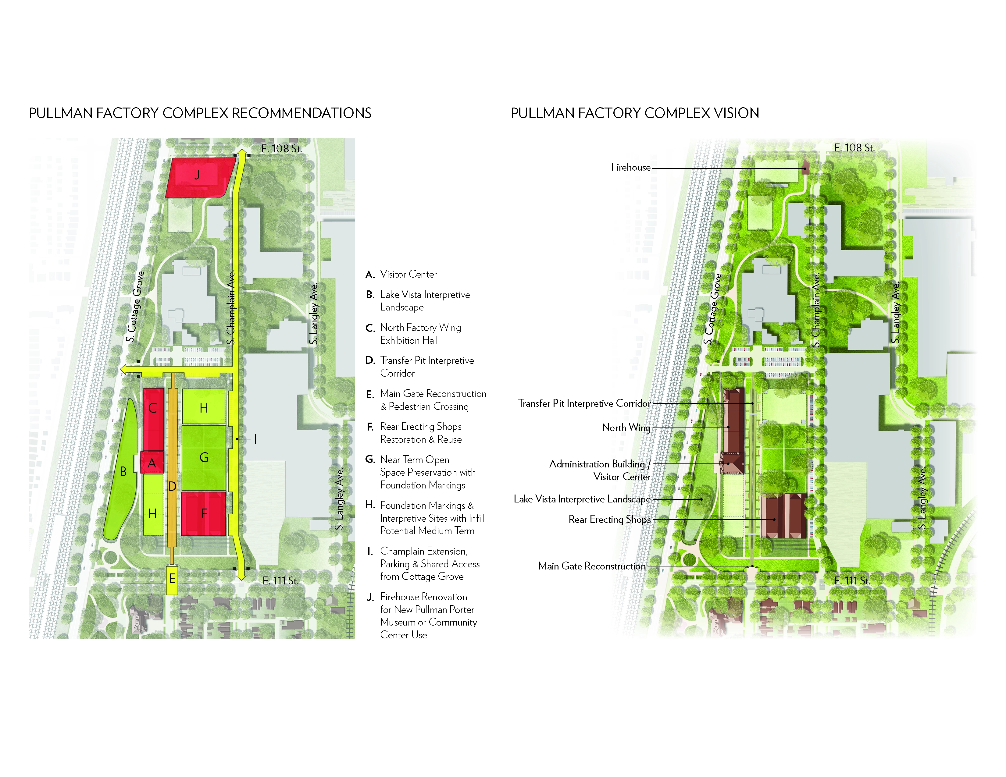 The Pullman Factory Complex is also envisioned to incorporate solar collectors, wind turbines, and rainwater harvesting features that reduce environmental impacts while also serving as educational features.