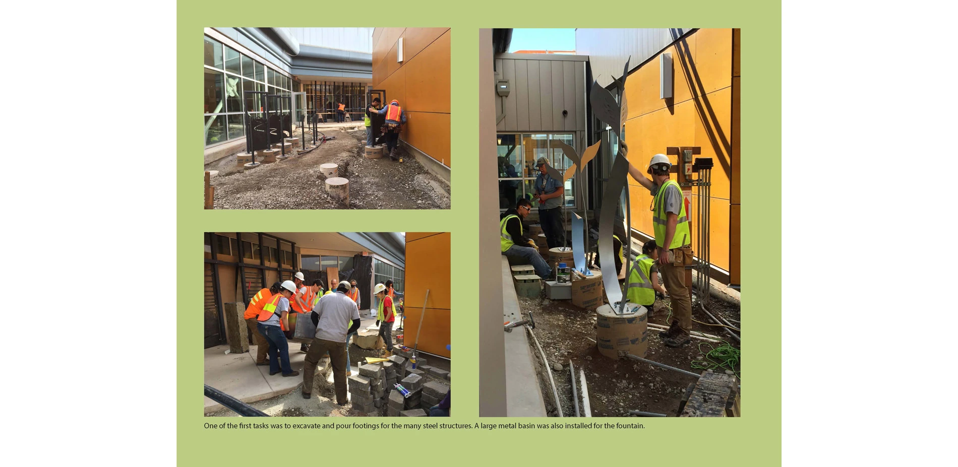 Over ten weeks of the Spring quarter the students fabricated and installed the entire garden. Using low tech, shovels, picks and MIG welding machines, and high tech, CNC and laser jet cutting machines to create steel screens, furniture, paving and a water feature. Students sought material donations and a local contractor donated the concrete cutting while another the irrigation and lighting. Students working in fabrication teams on site and in the Universities fabrication shops. Students alternated through the differing tasks to experience the breath of craft and complete the project on time. Local Native American veterans conducted a traditional blessing prior to the opening of the garden.