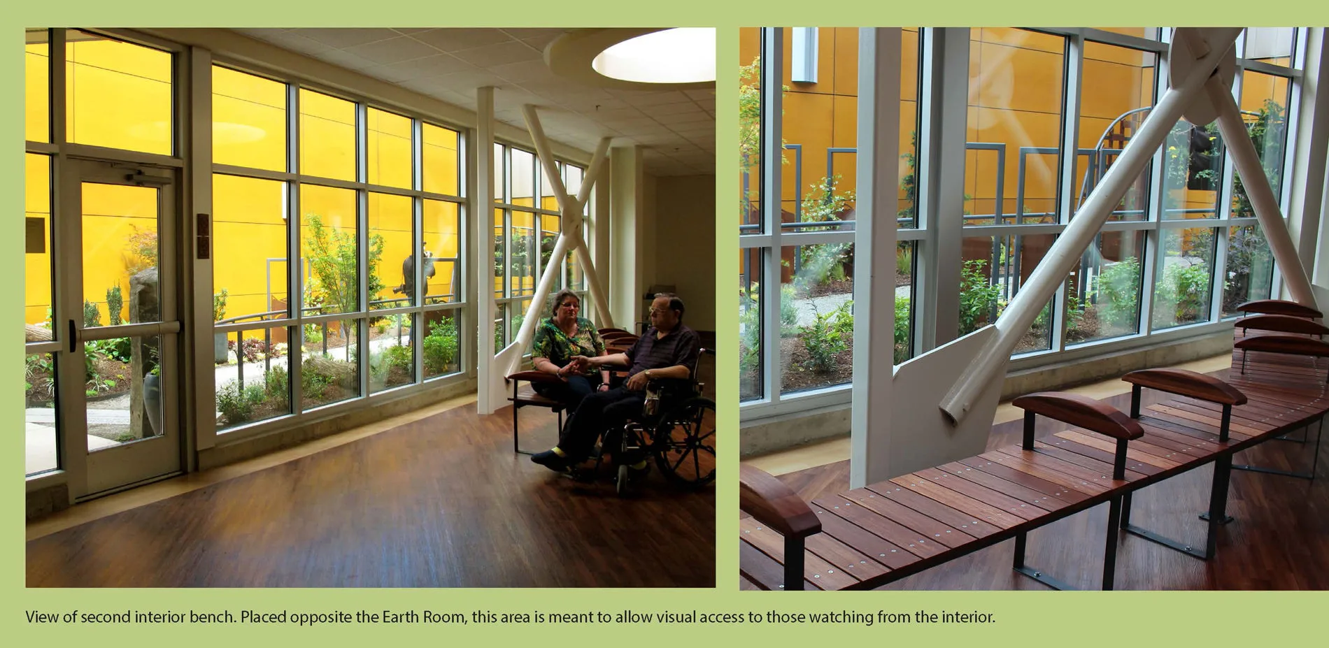 The wood furniture was designed and intentionally placed to create both physical and visual links that integrate inside to outside.