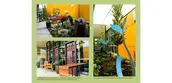 The Sky Room evokes feelings of openness and lightness. Despite the small size of the garden space, the buildings beautifully frame the sky, providing a sense of escape as one gazes upwards. The Sky Room is the destination for social interaction, shared meals, larger group activities, and small events. Movable tables and chairs allow people to play board games or have a place to sit and enjoy their coffee. A 30 degree reclined back on the curving benches draws the eye to the sky and also relieves low back stress. Eliminating arm rests on the ends of the benches enable those using wheelchairs to easily transfer from their chairs to the bench. A purposefully designed space between the benches is for wheeled-mobility users to sit and actively socialize with others sitting on the bench.