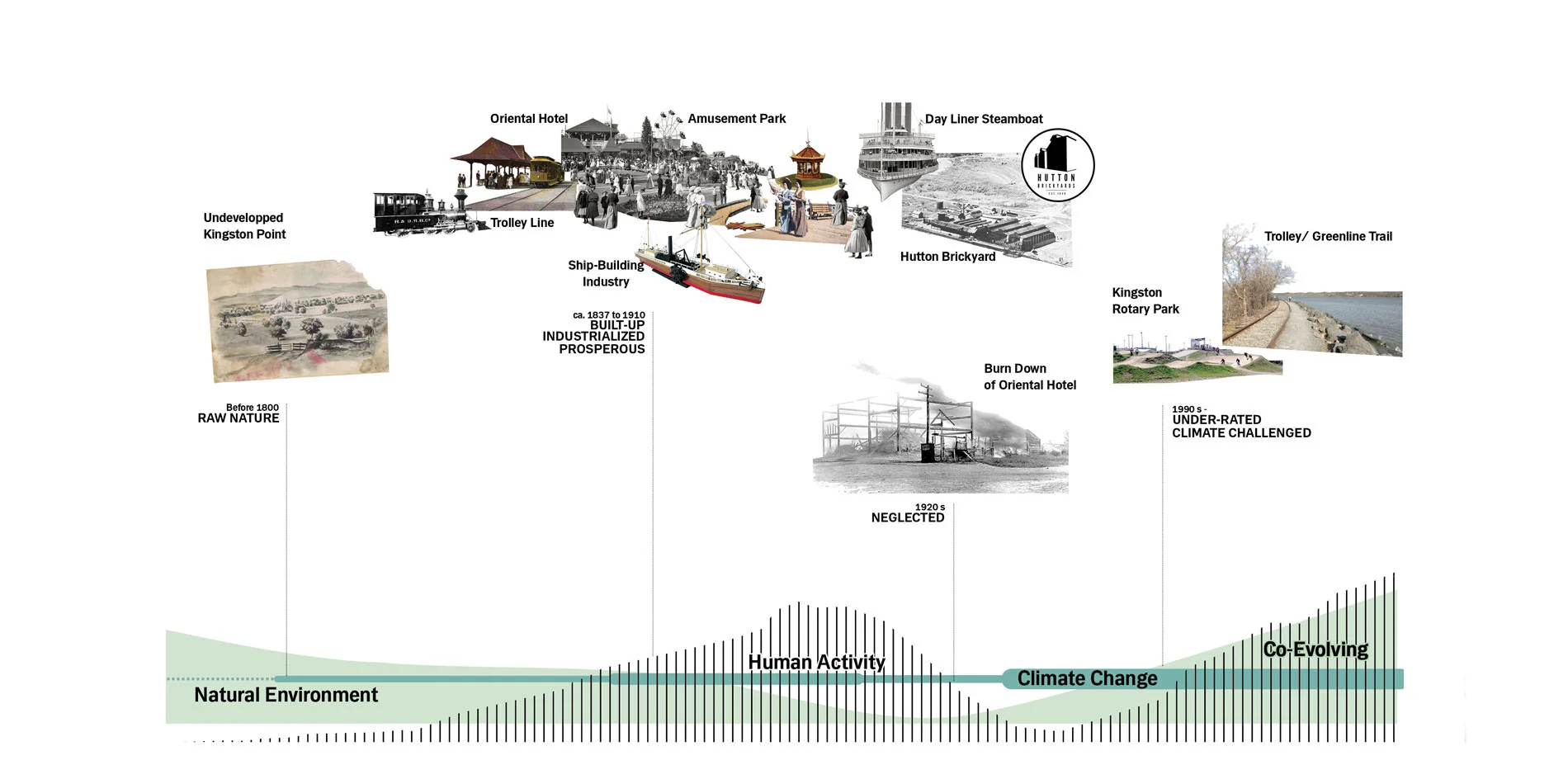 For over four century, waterfront of Kingston Point have experienced vicissitude of both nature and culture providing spectacular beauty, rich history, and ecological resources. Today, however, these values are threatened by changing climate and will end up in decrement and fragmentation. It is the major task to make the waterfront vibrant and active through the next hundred years and beyond for generations.