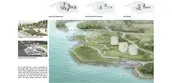 On the south area of the site, the program RETURN is aiming to weave the past and future, nature and culture by building a Maritime Cultural Park at the highland area currently occupied by oil storage tanks. Forms, elements and several individuals of the tanks will be kept and transformed to details and structures of the proposed cultural park. A pathway system is designed according to landform to provide better walking experience. New installations such as sculptures and land art works are also provided. As a result, the tiptop area with best view in Kingston Point will be returned back to public and prosperity of Victorian ages.