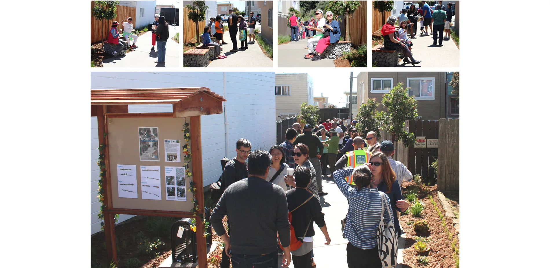 With the momentum gained from the success of Parcel 1, the neighbors then set their sights on the completion of the remaining four parcels that make up Ridge Lane. Monthly meetings ensured transparency in decision-making and assignments of volunteer tasks such as applying for grants, fundraising, neighborhood outreach and maintenance. Information gathered from various site visits and design workshops was incorporated in the design of the following parcels. In addition to the neighbors’ feedback, post-occupancy evaluations conducted from the first parcel revealed valuable information for the development of the other parcels. The presence of varying age groups suggests that Ridge Lane has the potential to reward its residents with valuable intergenerational social experiences as well as providing flexible spaces that could adapt to user needs. This is evident in the observation of user-generated programs such as daily Tai CHI exercises. Site elements such as seating areas and a bulletin board serve as a hub that contributes to spontaneous social interactions.