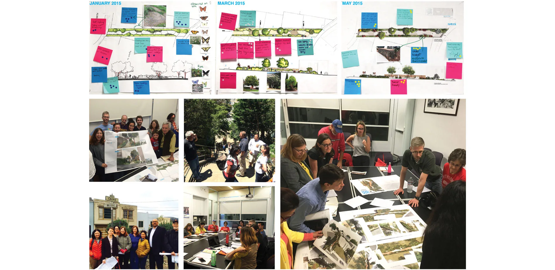 The design process of Parcel 1 involved regular monthly meetings and workshops to ensure that all voices and concerns were being heard and addressed. The meetings were well attended and represented the diverse population of the surrounding neighborhoods in terms of ethnicity, gender, and age. Neighbors discussed site elements such as benches, trees, and lighting while sharing their concerns and desires regarding safety, accessibility and aesthetics. The shared goal was to create a pleasing and comfortable space that represents the soul of Ridge Lane while instilling a sense of pride within the neighborhood.