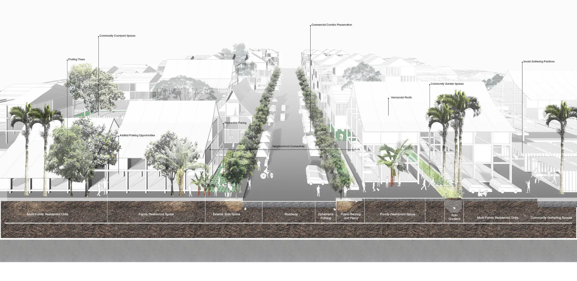 By including new public spaces, whether actively programmed or flexible, the new guide of community development for Kampung Baru champions the role of the community and facilitates the ability for the community to re engage with their land they are so deeply tied to. The new models of development could also then be disseminated throughout the other ethnic clusters of Kuala Lumpur as a guide for future development as well. Utilizing and implementing these new forms of community development would help to ensure the preservation of the unique diversity of Kampung Baru, and Kuala Lumpur and could also serve as a stepping stone for similar discourses of how the built environment and landscape can shape and inform the cultural integrity of a city.