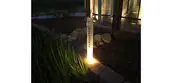 Finally, the landscape architecture and graphic design students designed and built the cistern enclosure and the individual graphic diagrams that tell the story of the rain garden. Graphic designers and landscape architects worked in teams to design, refine, and implement each type of diagram. For example, the blue management diagrams were designed by a landscape architecture and graphic design student that collaborated on the element’s scale, location in the garden, materials, word choice, dot placement, finish, connection detail and lighting. A plan, section, elevation and cost estimate were developed for the diagrams before being implemented by the team. The end result is a series of four, visually stunning panels that accentuate the design of the garden while conveying the four major functions of a rain garden.