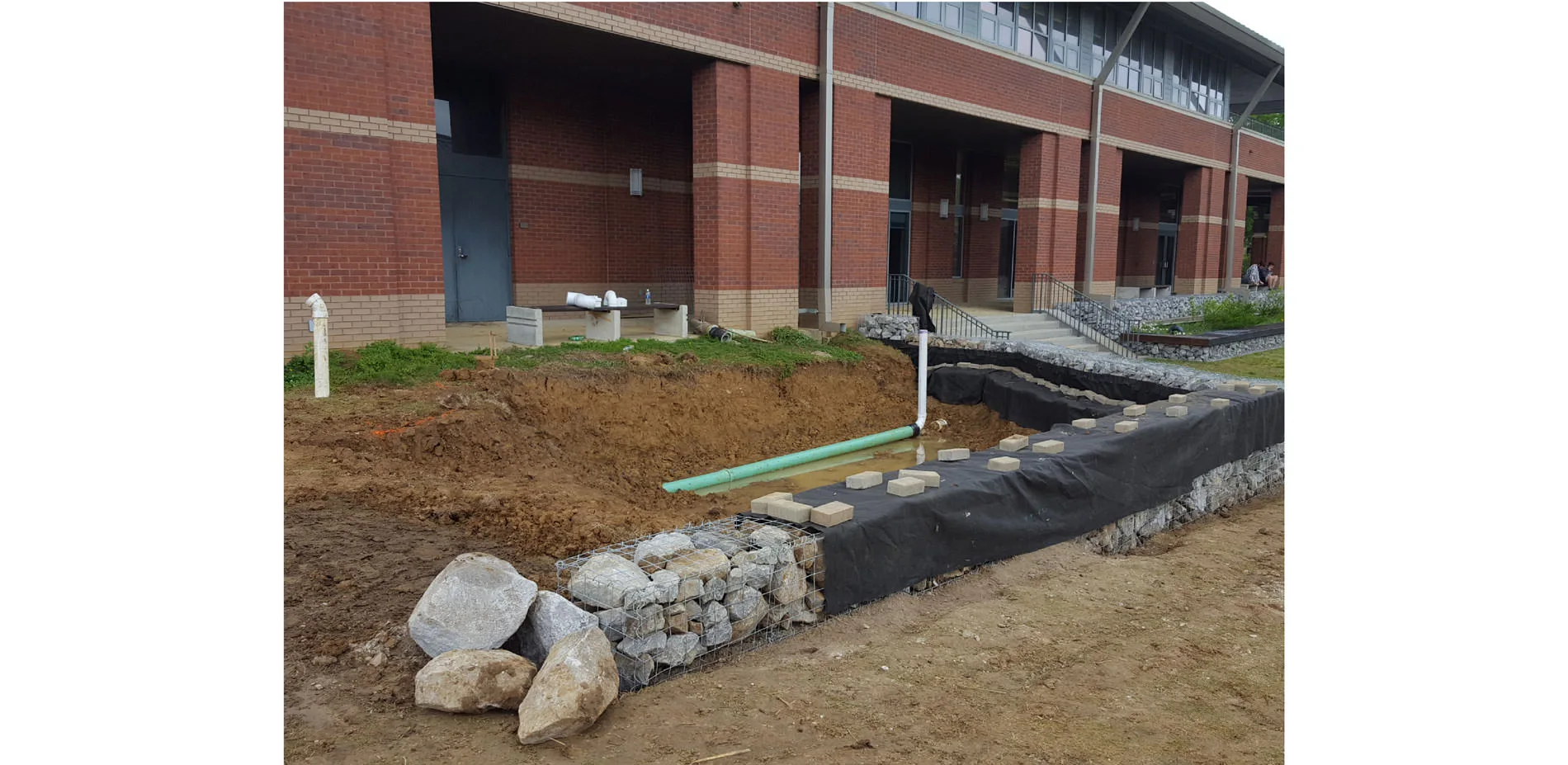 The project was funded through a $20,000 grant which was awarded to the student team which won a national competition to develop a green infrastructure demonstration strategy on a college campus.