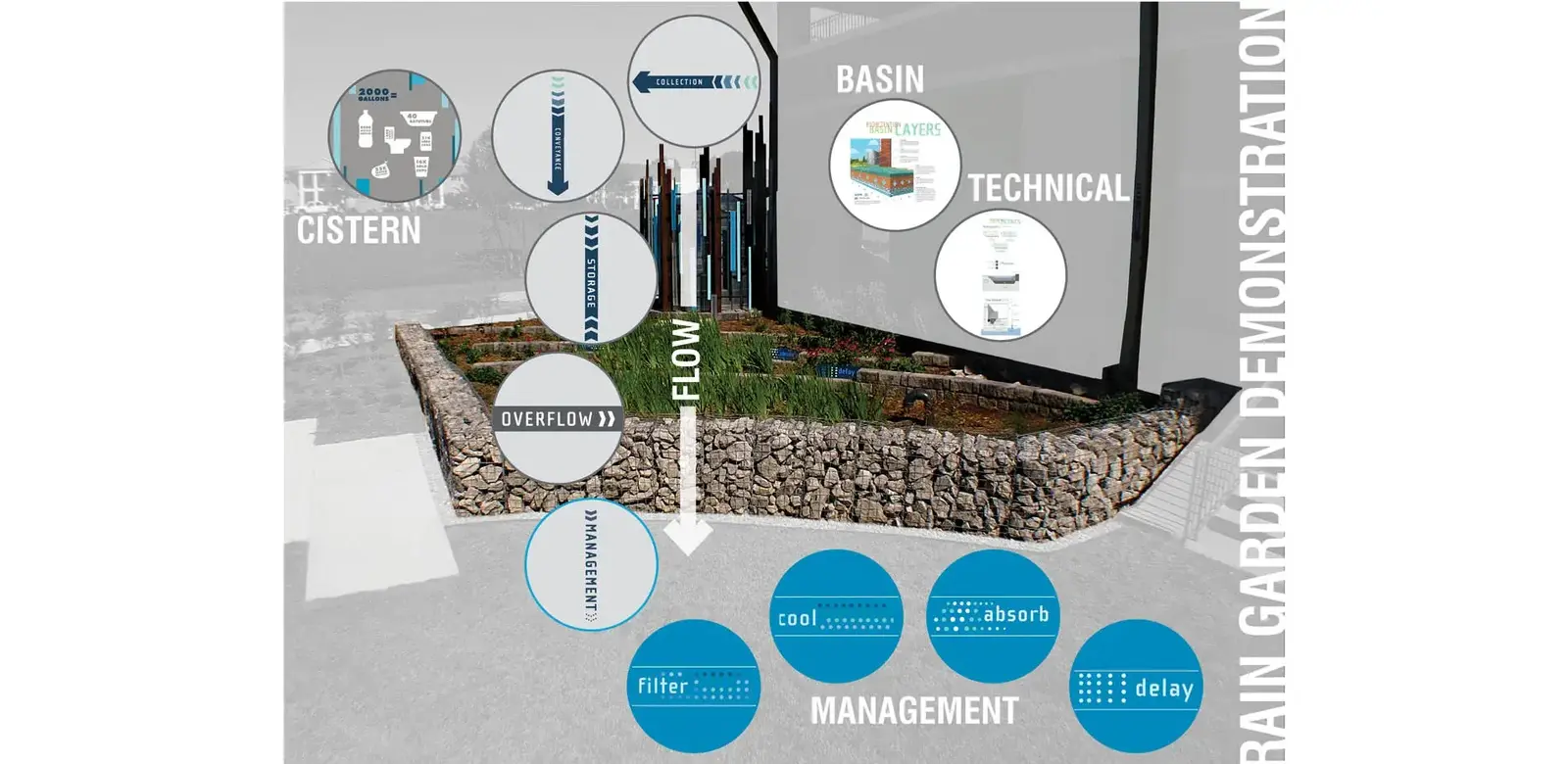 - As a demonstration site, the project communicates sustainable management of urban runoff with several levels of information graphics. Each level has a different target audience from novices to seasoned professionals.