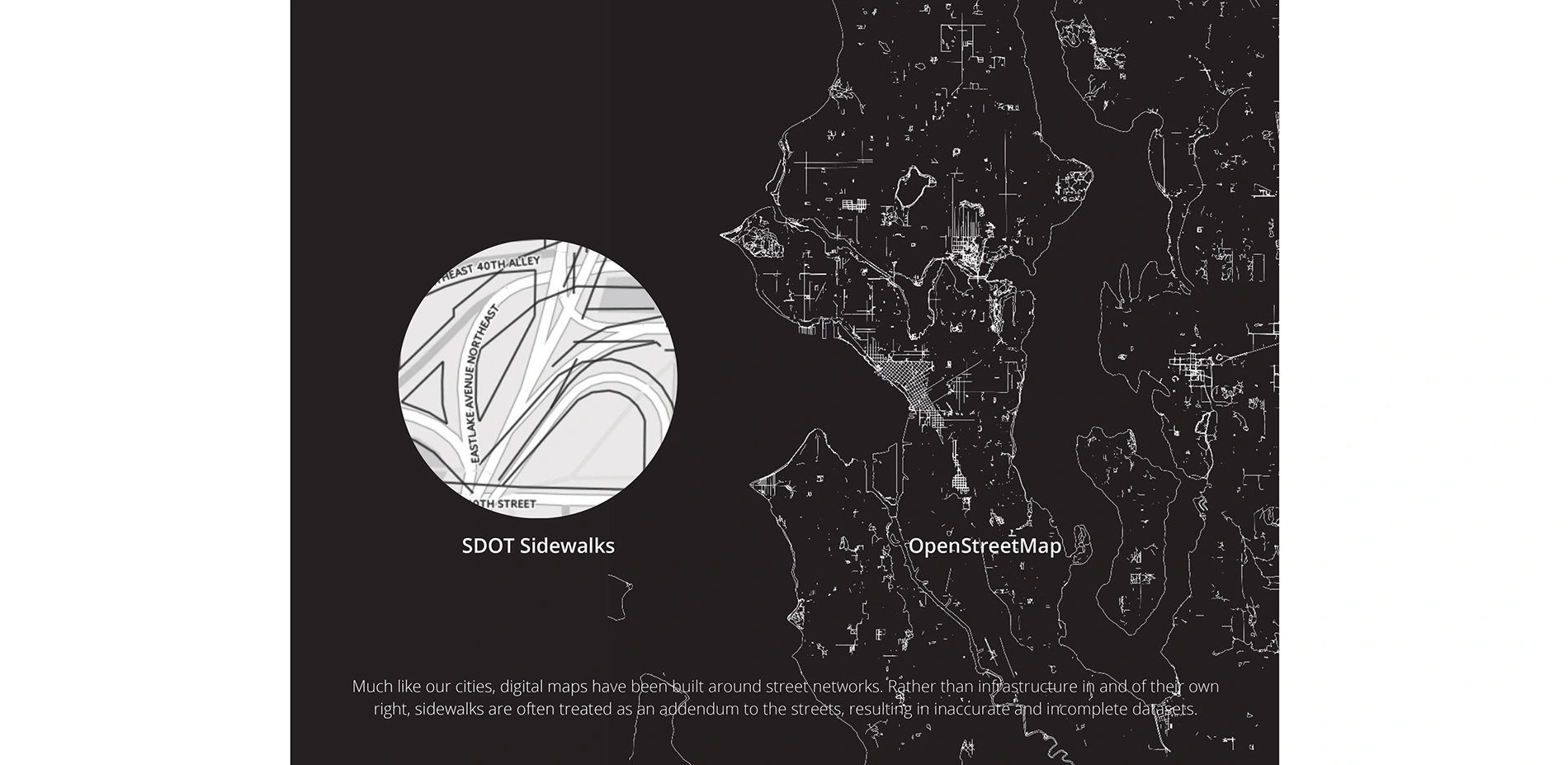 This project is meant to bring attention to the deficiencies of the system currently place, in which accessibility checklists too often are accepted in lieu of truly inclusive design. The straightforward approach is intended to remind designers that accessible design is good design, and if we want to build more equitable cities that means there is a huge spectrum of experiences we must first understand.