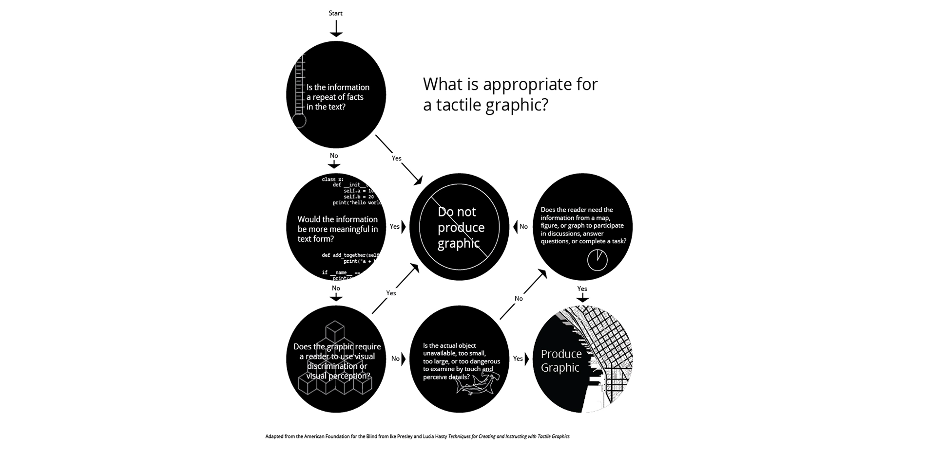 Tactile maps are not new to the cartographic record. Their value in facilitating orientation and navigation for the low vision and blind communities has been well established. However, their scope and availability has been greatly limited in the past by high production costs and limited interest from fields traditionally invested in map making and design. These maps have been designed as tools that enhance spatial understanding for people within a large range of visual capacities. They abstract nonvisual cues from the pedestrian environment and consider circumstances that influence a full spectrum of experience.