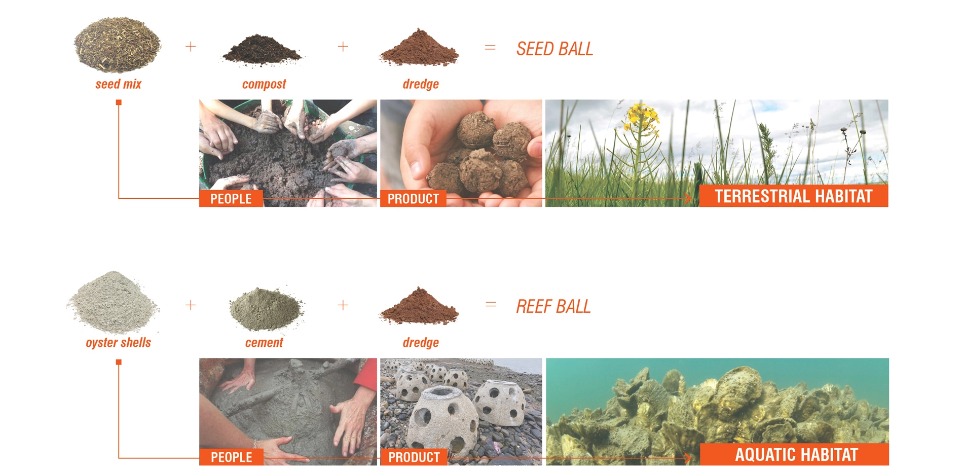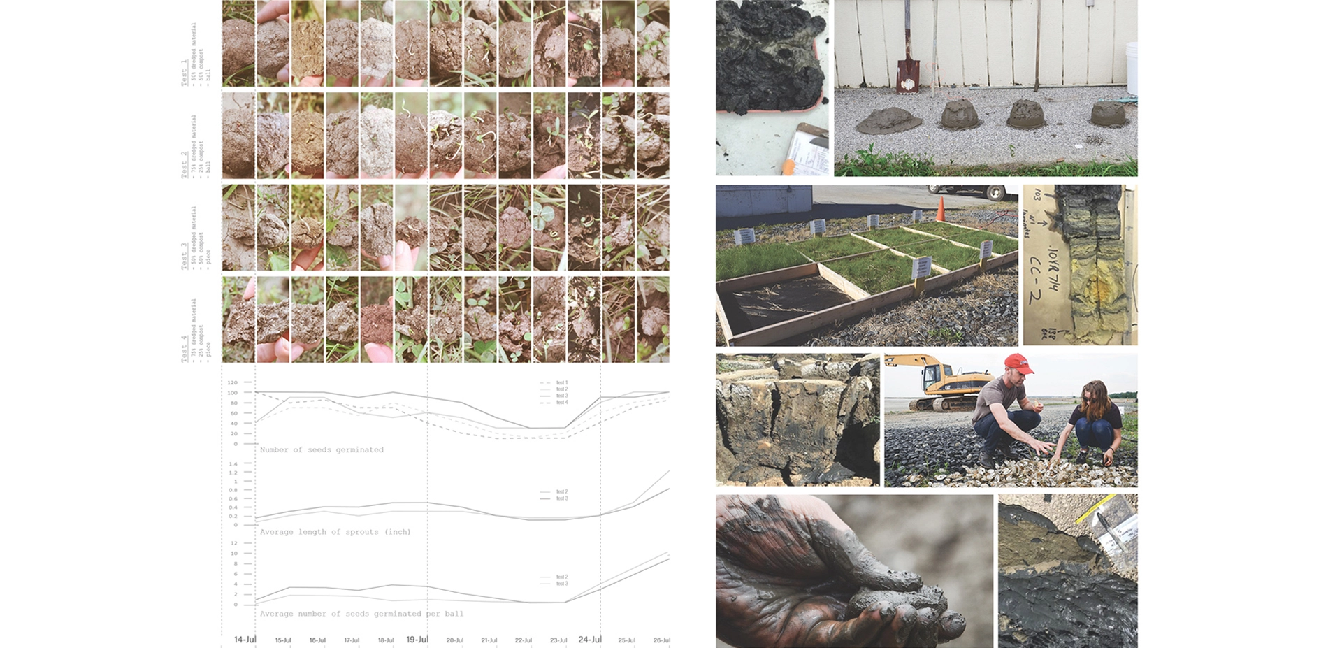 Transitioning from insight to action, the project's suitability model is a flexible analytical tool that prioritizes sites for sediment-based resiliency strategies; accounting for feasibility and environmental justice constraints such as bathymetry, benthic pollutants, wetlands potential, and proximity to public parkland. Material tests and experimentation with dredged material provides a basis for future performance, as well as an entry point for participatory action and design projection. However, they do not attempt to prove statistical significance or guarantee results. Rather, they serve as specific analogs for one-to-one design exploration that establish a meaningful dialogue between existing conditions and future possibilities. Moreover, they communicate an engaged and cross-disciplinary methodology that is digestible by experts and public stakeholders alike. This multilingualism is central to the Design with Dredge research program, which attempts to overcome both entrenched negative perceptions of dredged material and recover its capacity as a substrate for resilient landscape infrastructure. To that end, material studies guide participatory action, which take shape as hands-on community workshops to create seed balls and reef balls that incorporate dredged material with other ingredients such as compost and native meadow mixes or oyster shells and cement for restoration of terrestrial or aquatic habitat respectively. Design projection is an operative meta-research method, sampling and synthesizing findings from other modes of inquiry to formalize spatially explicit and site specific propositions for urban resiliency. Perhaps more importantly, it is also a mechanism to catalyze and sustain cooperative action in the Baltimore region, providing project partners and the public a prism through which to reimagine and recreate their relationship to dredged material.