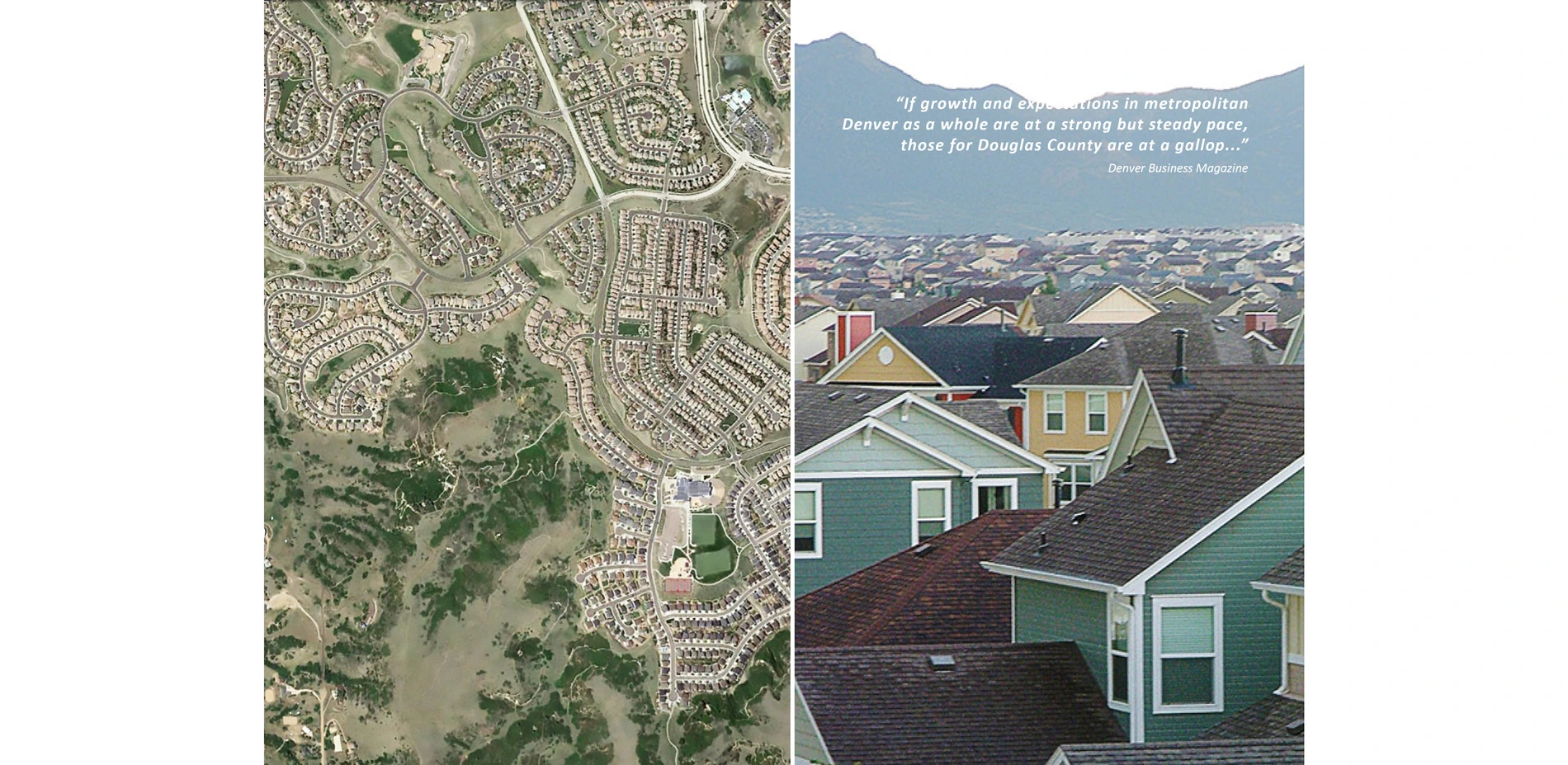 "If growth expectations in metropolitan Denver are strong, Douglas County's are at a gallop. With the coming explosion along Denver's southern I-25 Corridor and development in Colorado Springs, commercial and real estate developers are positioning themselves in Douglas County along the Corridor." - Denver Business Magazine