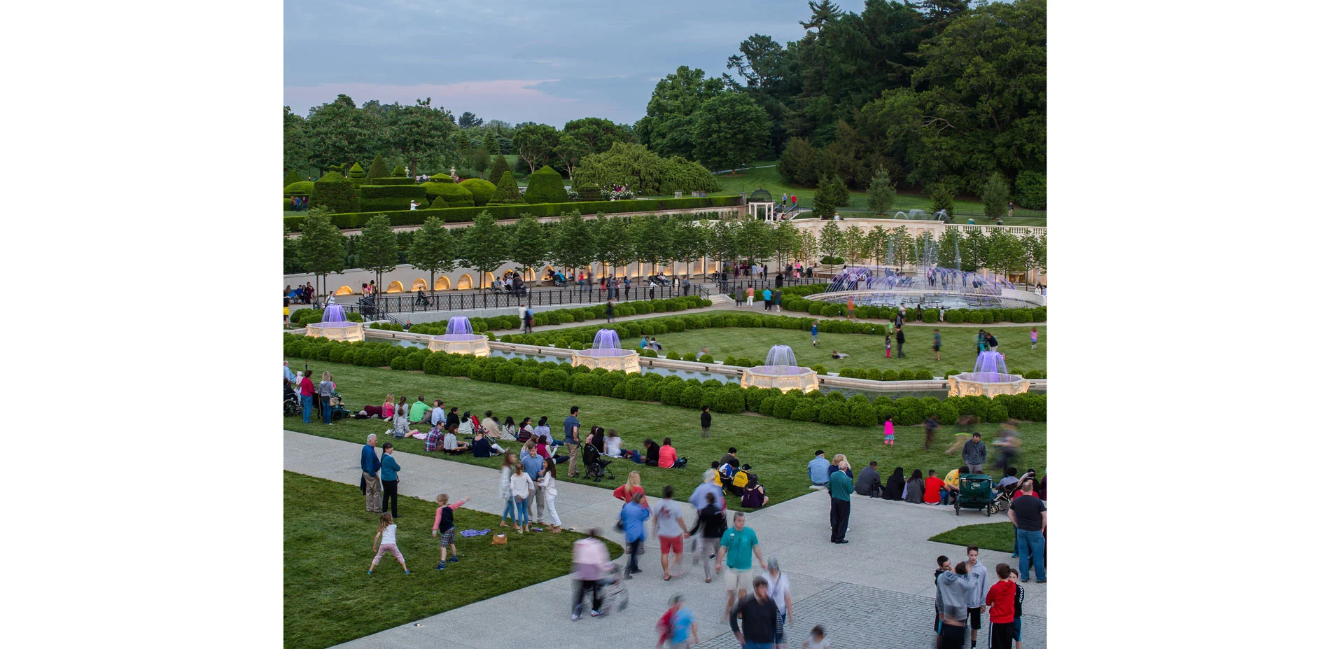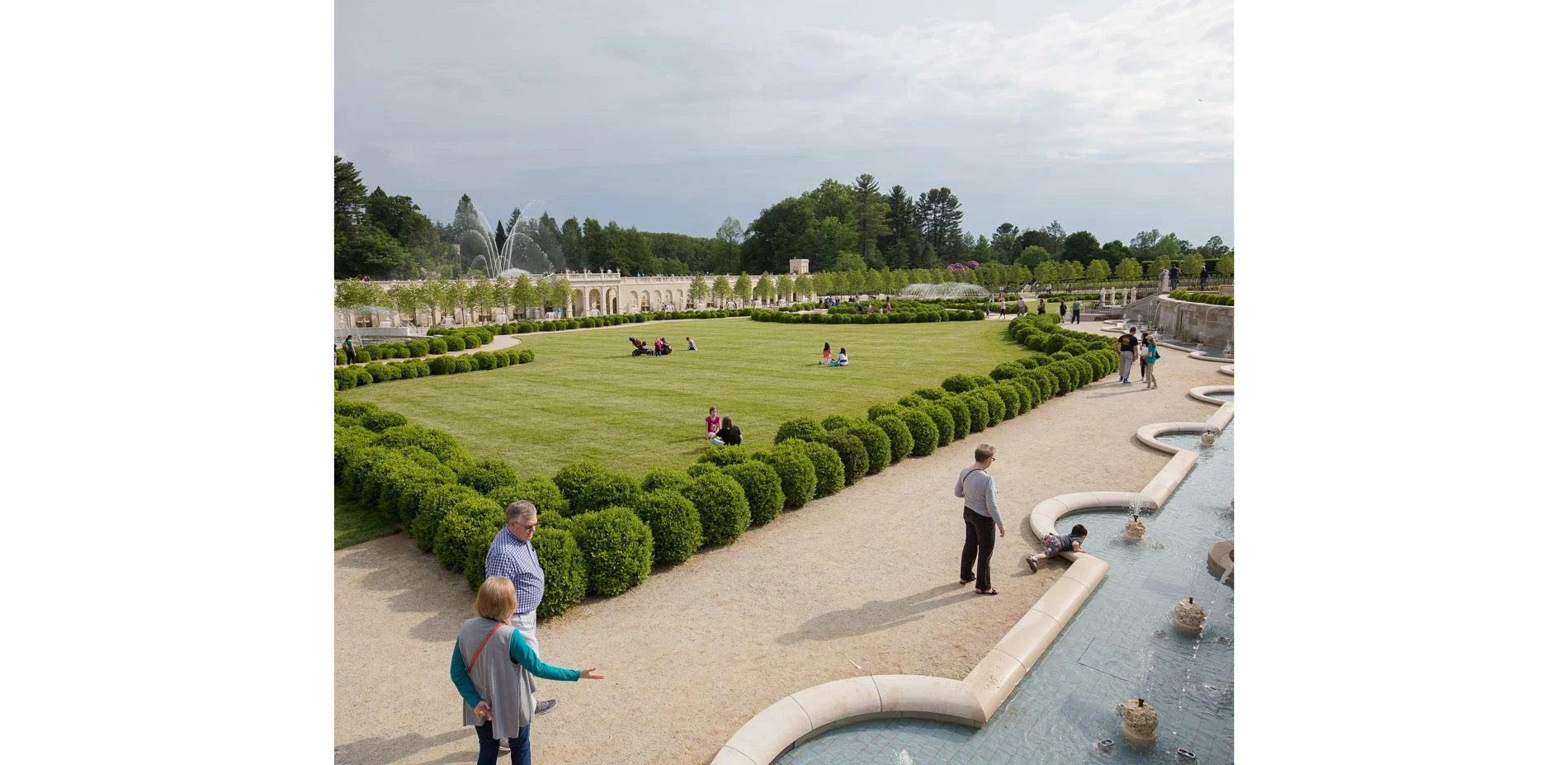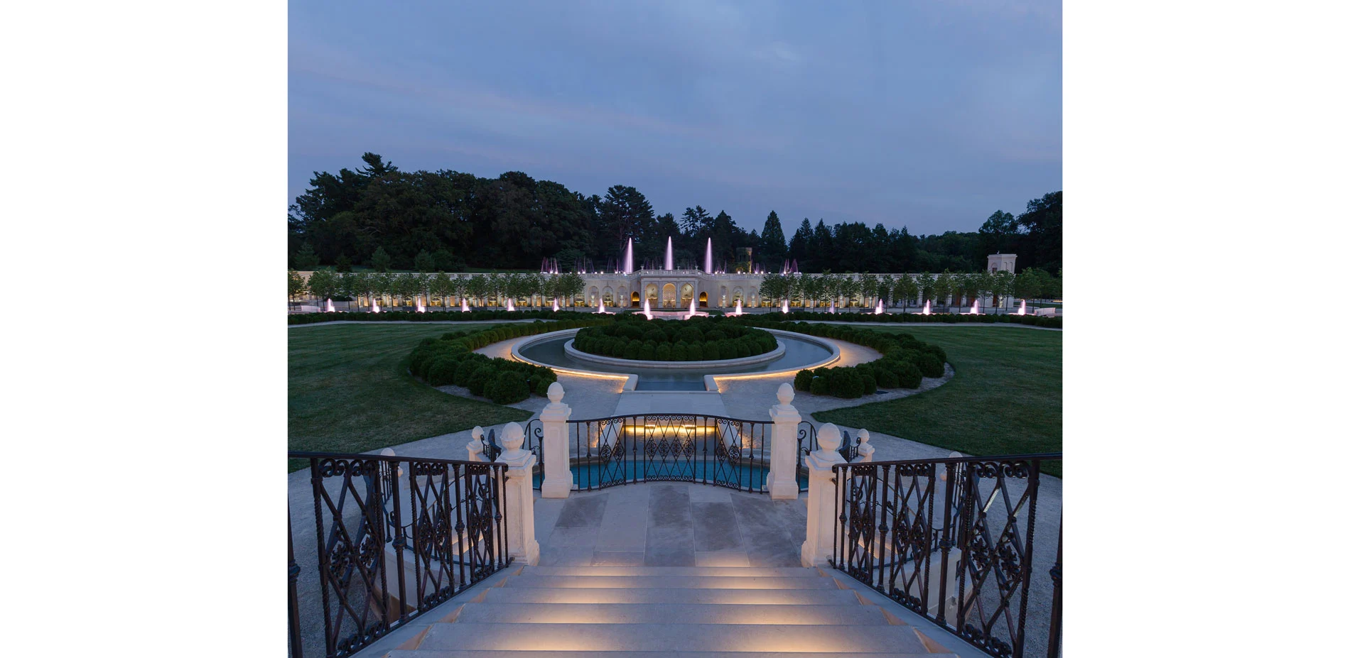 The Main Fountain Garden revitalization builds upon Longwood's first-ever physical master plan, which was completed by the landscape architect in 2011. The original astonishing design by Pierre du Pont was honored, and yet, the fountain garden was re-imagined. It plays a key role in the park as it is the first and most dramatic encounter of the vast gardens which span 1.077 acres. The 83-year-old fountain infrastructure has been replaced with the latest technology, visitor's access to the garden and horticultural elements are improved and make the fountain garden an entirely new experience. These changes are in line with the garden's ambition of becoming one of the greatest gardens in the world. While the restoration included corporeal retrofits, it is the visitor-oriented design approach that truly brings it closer to its goal. The Fountain Garden is coherent throughout and manages to merge traditional design and values with sustainable, contemporary design practices and needs alike. The Main Fountain Garden achieves a renaissance for the gardens while retaining its identity as recognizably "Longwood".