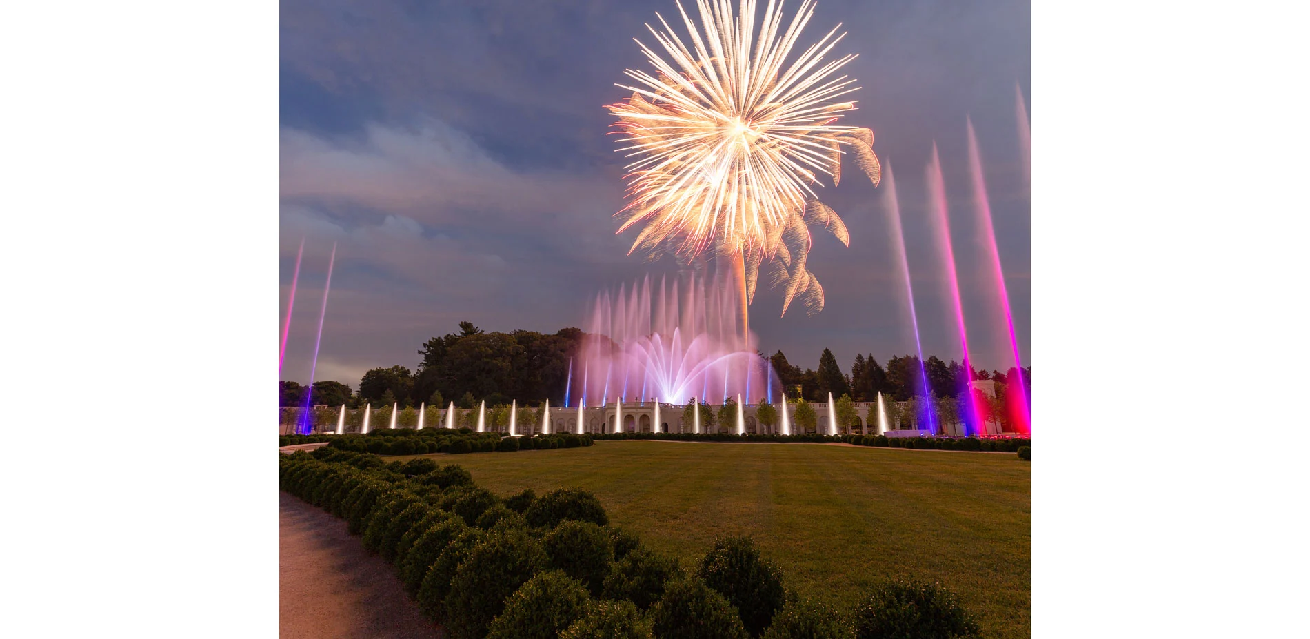 Longwood Gardens, and the Main Fountain Garden in particular, were missing one important characteristic: accessibility. Only a few paths spun across the landscape and invited people to take a stroll and explore the gardens in their entirety. Like the rest of the park, the Main Fountain Garden now offers better access for guests, which makes their experience in the gardens much more intimate and engaging. Especially the elegant south wall with its twenty wall-mounted fountains, which was closed for the public for the last twenty years. Throughout the five-acre main Fountain Garden, 4,000 pieces of carved Italian limestone were completely restored. The 83-year-old fountain infrastructure was replaced with the latest technology without harming the integrity of the work. The modern systems pump 300,000 gallons of water around 380 fountains, allowing for a more efficient performance and longer running time during the year. It also offers new choreographies that include water jets up to a height of 175 feet. Due to increased control over the jets, they are programmed to perform unique undulating, spinning, and flexing effects as well as a state-of-the-art flame feature. Thanks to the replacement of the old lighting system, the water shows can be emphasized with a more colorful LED-system.