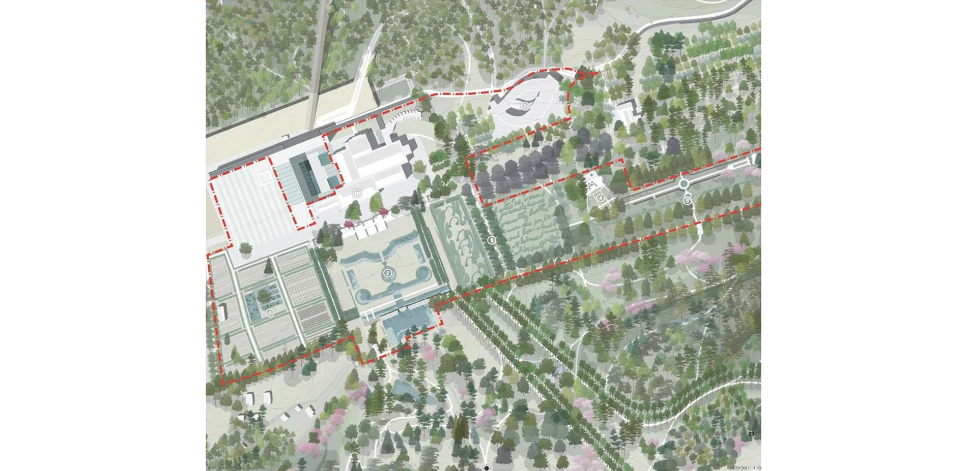 The design team's work on the Main Fountain Garden builds upon Longwood's first-ever physical master plan, which was completed by the landscape architect in 2011. Longwood Gardens strives to inspire people through excellence in garden design, horticulture, education, and the arts. The master plan embodies this aspiration and reflects the vision of the gardens to become 'a world apart, a place accessible to all'. It is a visionary document tasked with transforming it into one of the greatest gardens in the world. The plans for transformation are balanced by a safeguarding of Longwood's historic legacy. Meanwhile, they provide solutions for a number of critical concerns, such as growing visitation, aging facilities, disorganized logistics and overburdened infrastructure. The aim was to harmonize the design of the garden's public spaces with the original design, to enhance the Main Fountain Garden's horticultural elements and to create new gardens that would provide enhanced amenities for Longwood's guests.
