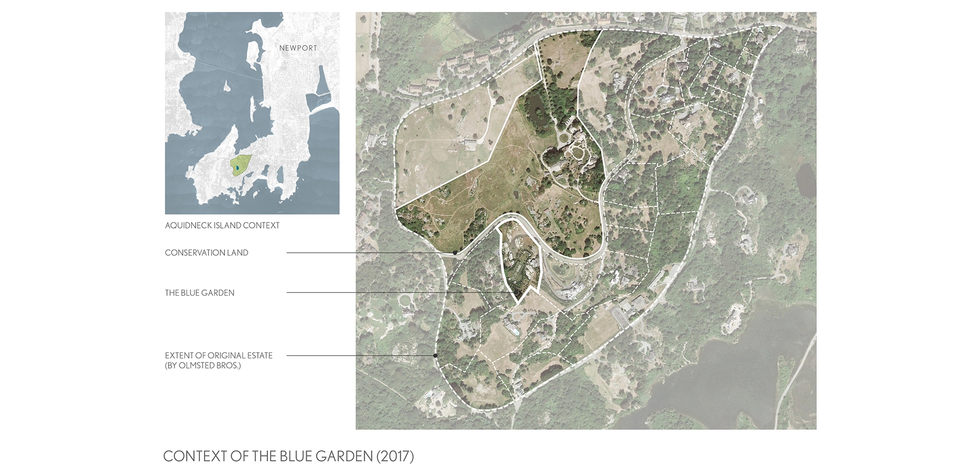 This project gives new life and expanded regional prominence to The Blue Garden, a neglected yet significant early 20th-century garden designed by Olmsted Brothers, which exemplified Italianate traditions of the Country Place Era of American gardens, and offered a place of jubilant social gatherings reflecting the colorful personality of its client, Harriet James Curtis. Just as the original garden benefitted from generous patronage, so this site has been revitalized by a patron who both recognized its historical importance and realized what is required for it to survive the next 100 years. The scheme adapts the original Olmsted Brothers' design intentions to a changing climate and to the constraints of contemporary maintenance levels, with a smaller palette of more reliable, longer-flowering, drought-tolerant plants, and greater use of perennials in place of labor-intensive annuals. The enclosed Blue Garden is intensified as a hortus conclusus by preserving and reestablishing the agrarian context that surrounds it - a profound commitment by the new owner to stave off rapid suburbanization of the island.