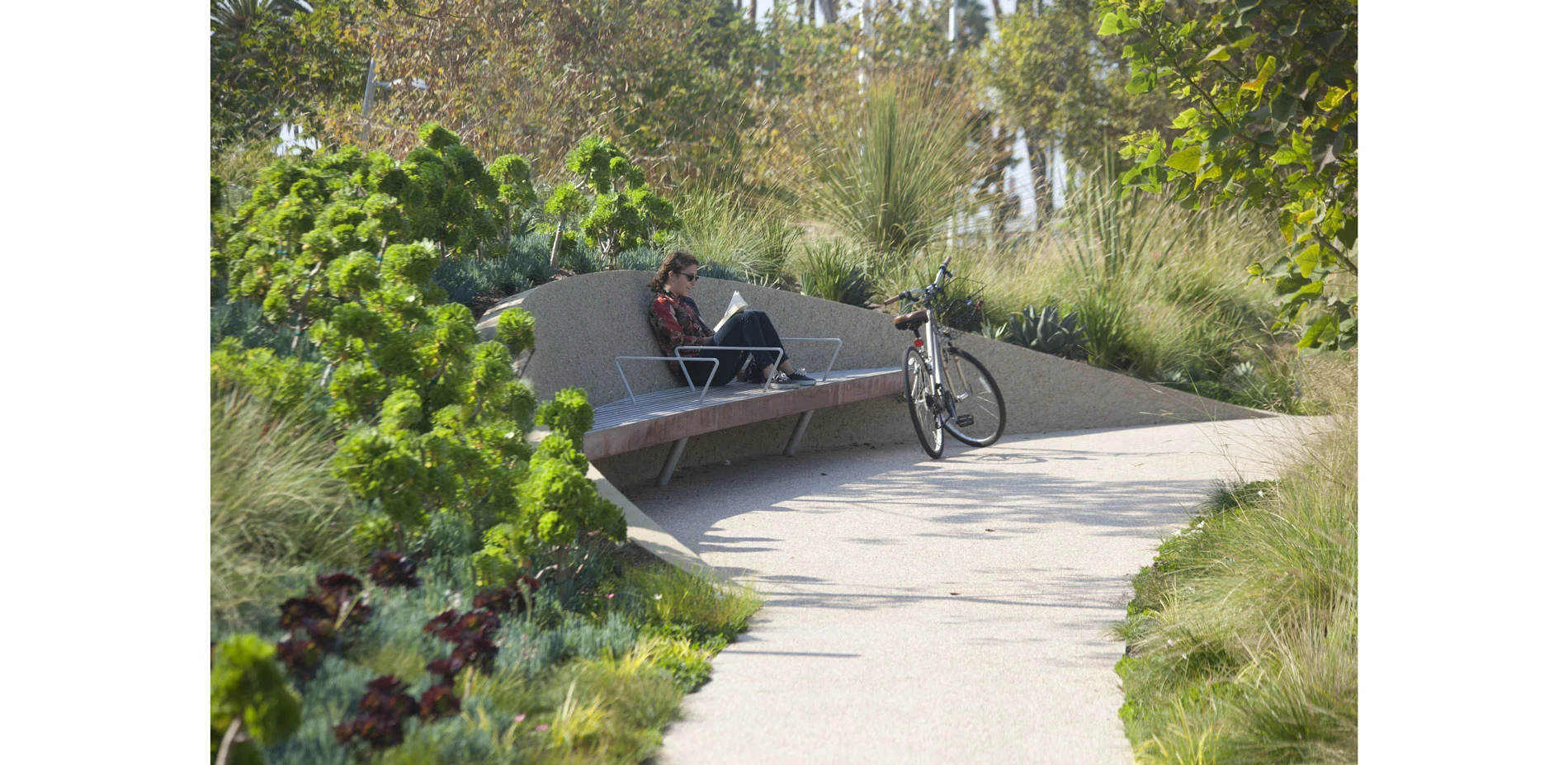 The project offers a new model of sustainability for similarly scaled projects-- one that carefully balances environmental and cultural considerations. The radical restoration of ecosystem services to the site via amended soils and a dramatic biomass increase is complemented by an irrigation system that uses water from the nearby Santa Monica Urban Runoff Recycling Facility. Irrigated water and stormwater are maintained on site through the natural movement of water into bioswales at the base of most hills in the park.