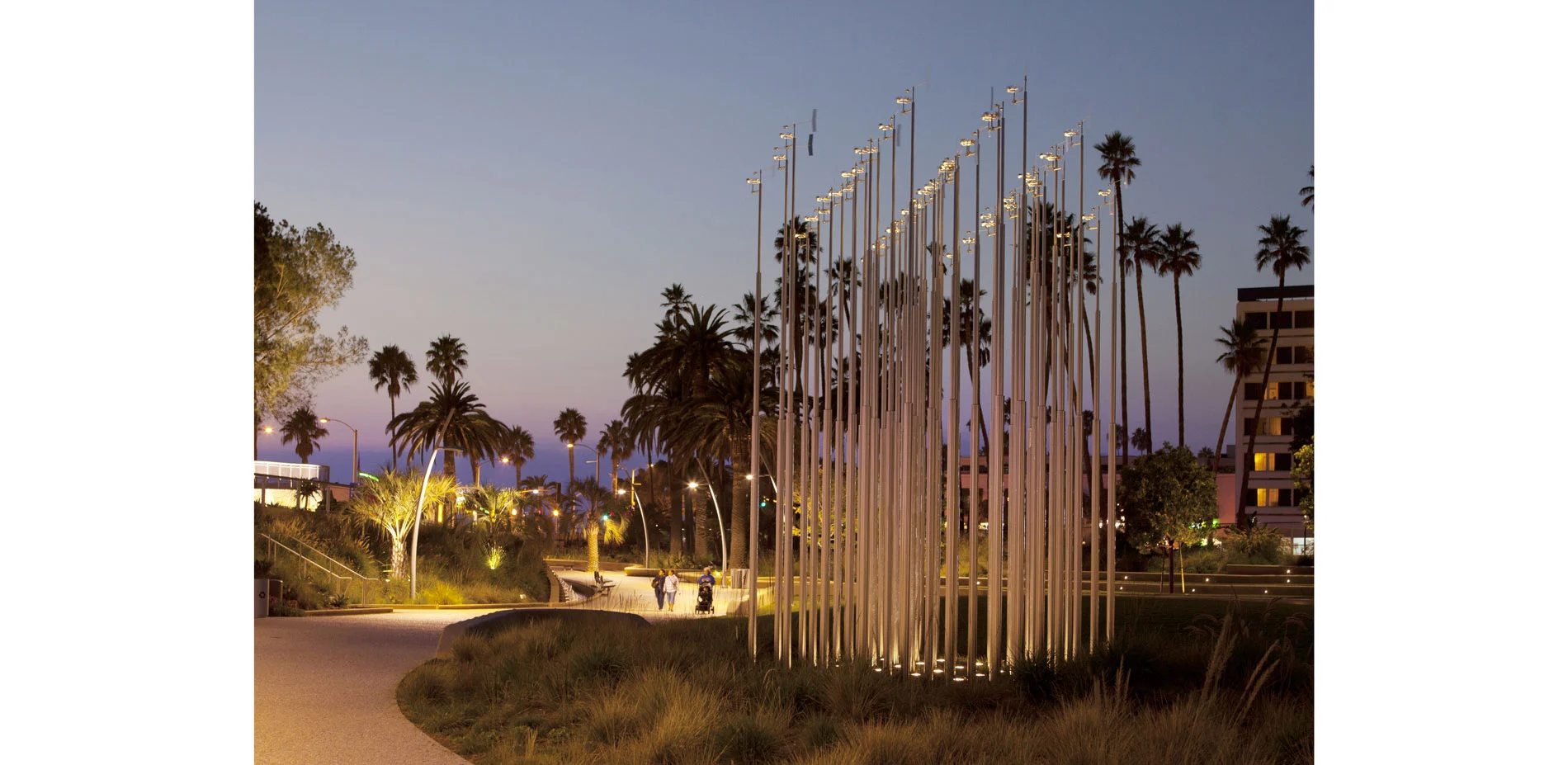 The design brief for this project was 'to construct a park and "garden walk" that reflected the identity of the city and created a destination and gathering place of great social, ecological, and symbolic value.' Shaped by extensive community participation, the design of this project creates a contemporary, sustainable, and transformative urban landscape that redefines the center of Santa Monica, establishes a system of linked central parks, re-knits the city fabric through strong linkages to Downtown, the adjacent neighborhoods, the Santa Monica State Beach, Palisades Park, and the Main Street commercial area, and mitigates the barrier created by the Santa Monica Freeway.