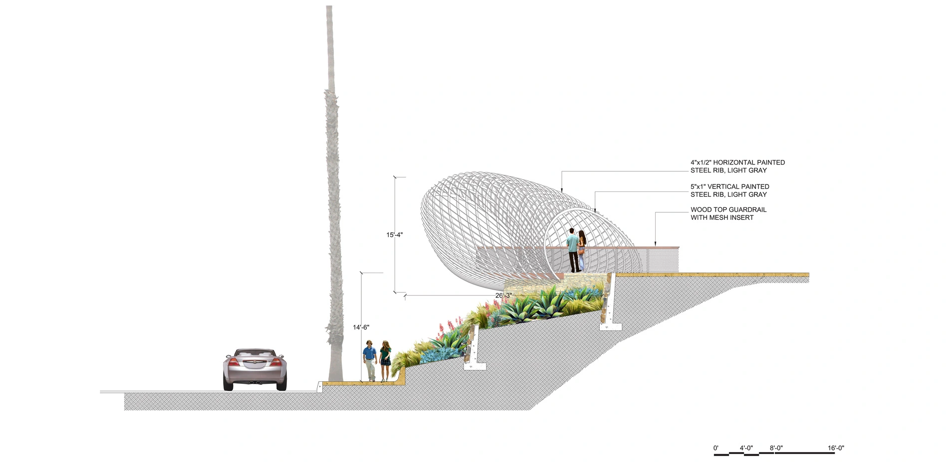 - Observation Hill offers the best views of the ocean and neighboring vicinity culminating in two distinctive shell-like overlooks that frame iconic views and vistas of Santa Monica and the ocean;