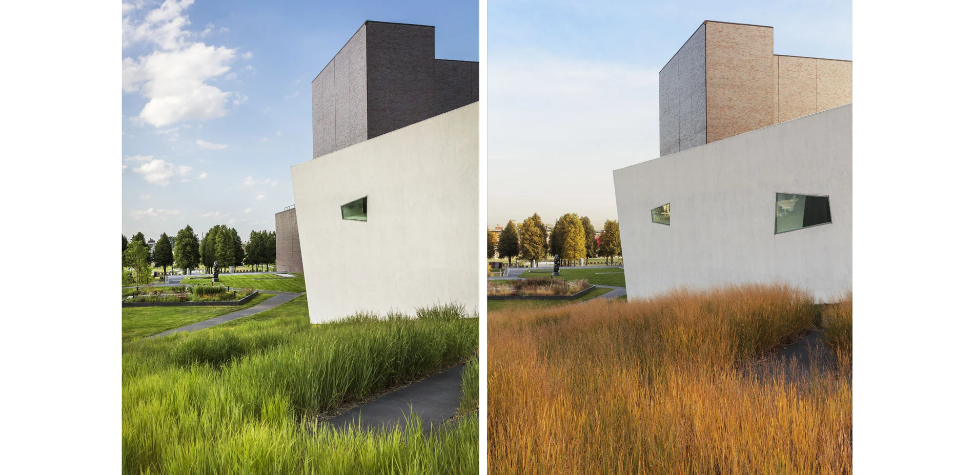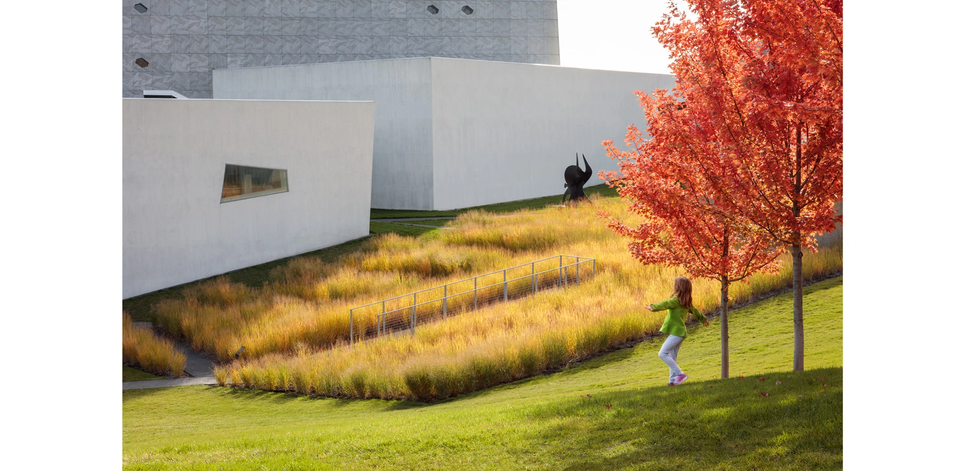 A sinuous, zigzagging accessible walk of raked black concrete connects the garden volumes allowing visitors to wander through the garden appreciating the plants and art while enjoying views to the newly completed sculpture garden and surrounding city.