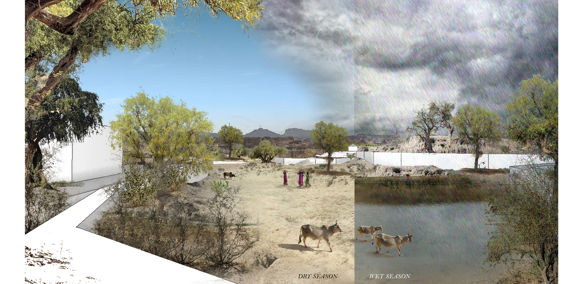 India, a country rapidly moving toward contemporary aspiration of urban livelihood. Looking down upon their thousand years old traditions, which are considered as signs of backwardness, where as some of these practices are well complied with contemporary world. This project tries to extract one of these neglected and unknown practices in the desert of Rajasthan, called "Oran" –a system of settling around a multipurpose forest and maintaining it through generations.