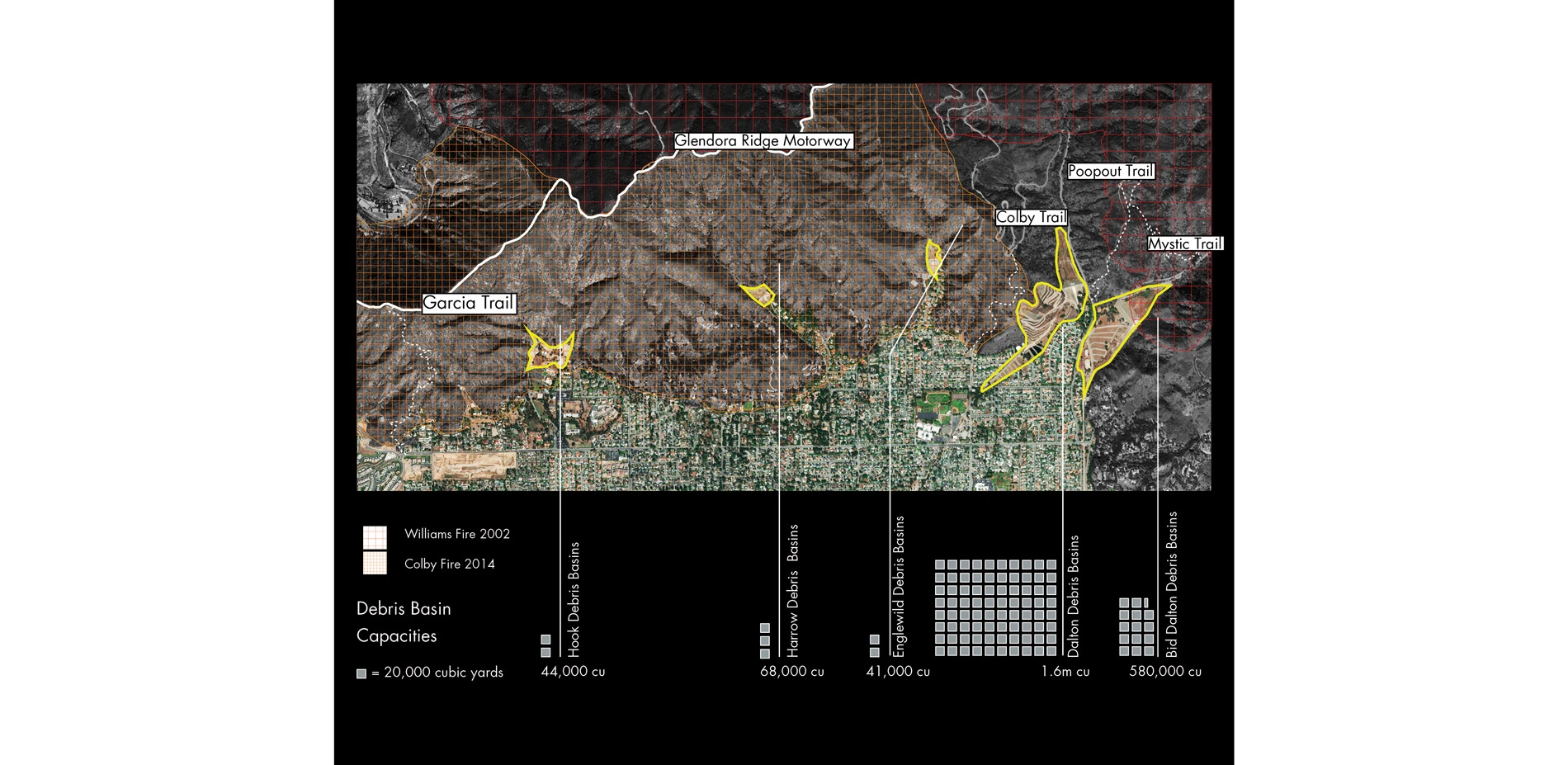 Wildfire management requires the deployment of strategies developed to acknowledge the delicate balance of ecological systems among expanding communities within the wildland urban interface (WUI). Pyro-diversion: Planning for Fire in the San Gabriel Valley responds to the ecological and anthropological needs of southern California by implementing a novel set of landscape strategies used to slow down, but not suppress, wildfires along the foothills of the A
