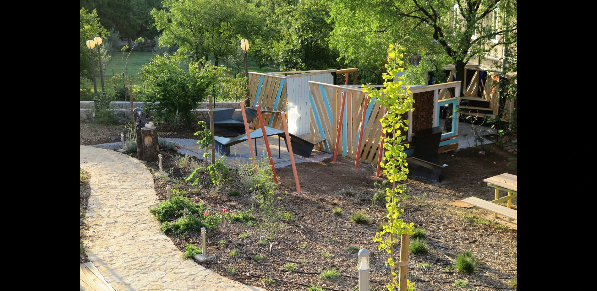 A once neglected space on the grounds of a former monastery turned high school dormitory has emerged as a community therapeutic garden. It is now a place of peace, intergenerational social exchange, and sensory stimulation for a multitude of people: resident high schoolers, kindergarteners, community members, and two communities underserved in the realm of equal access to local parks, members of the Association for the Blind and Association for People Over 60 with