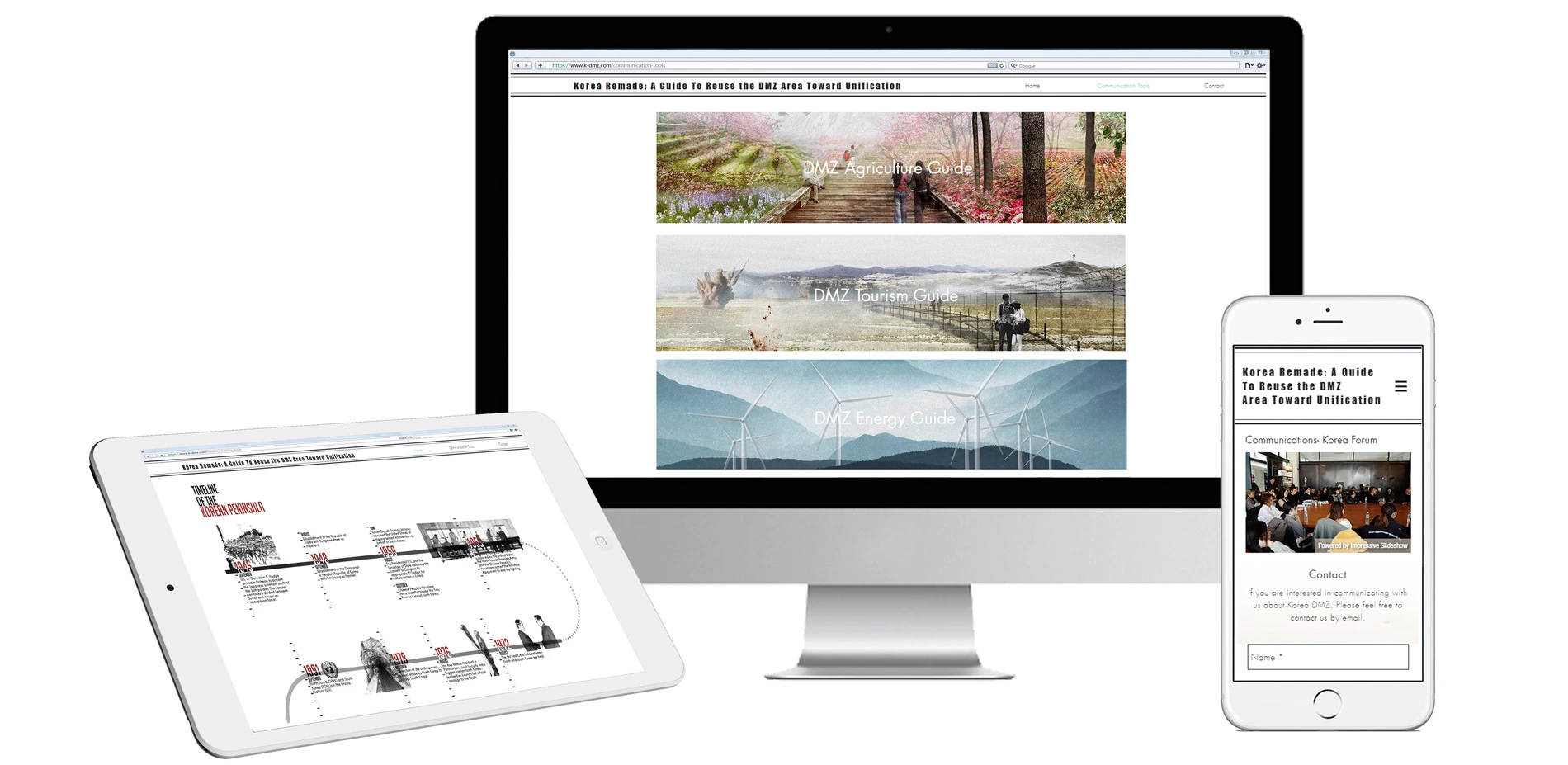The guide books are highly accessible to a wide of audiences, including citizens, visitors, and government planners. DMZ Agriculture Guide focuses on local farmers and government planners. DMZ Tourism Guide focuses on local visitors as well as from overseas. DMZ Energy Guide focuses on government planners.