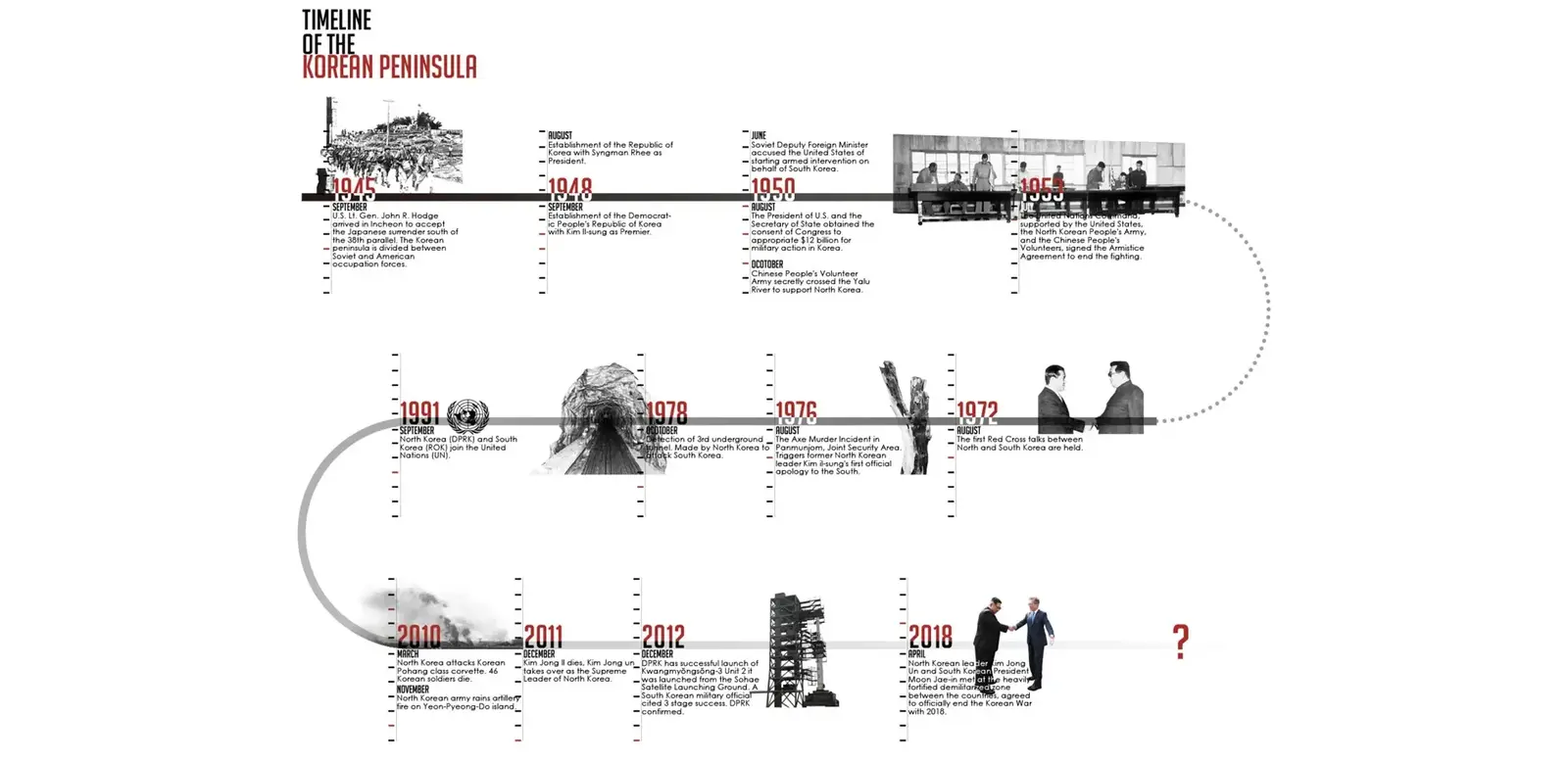 In 1945, the Korean Peninsula was divided into divided territories with standing armies on either side of the 38th Parallel. Recently in 2018, the North Korea and South Korea leaders met at the heavily fortified demilitarized zone (DMZ) established after 1953 between the countries and agreed to officially end the Korean War (1950- 53). As landscape designers, we wanted to use landscape architecture and design approaches as a medium to help the process of unification through programs, infrastructure and remaking the landscape of the peninsula.