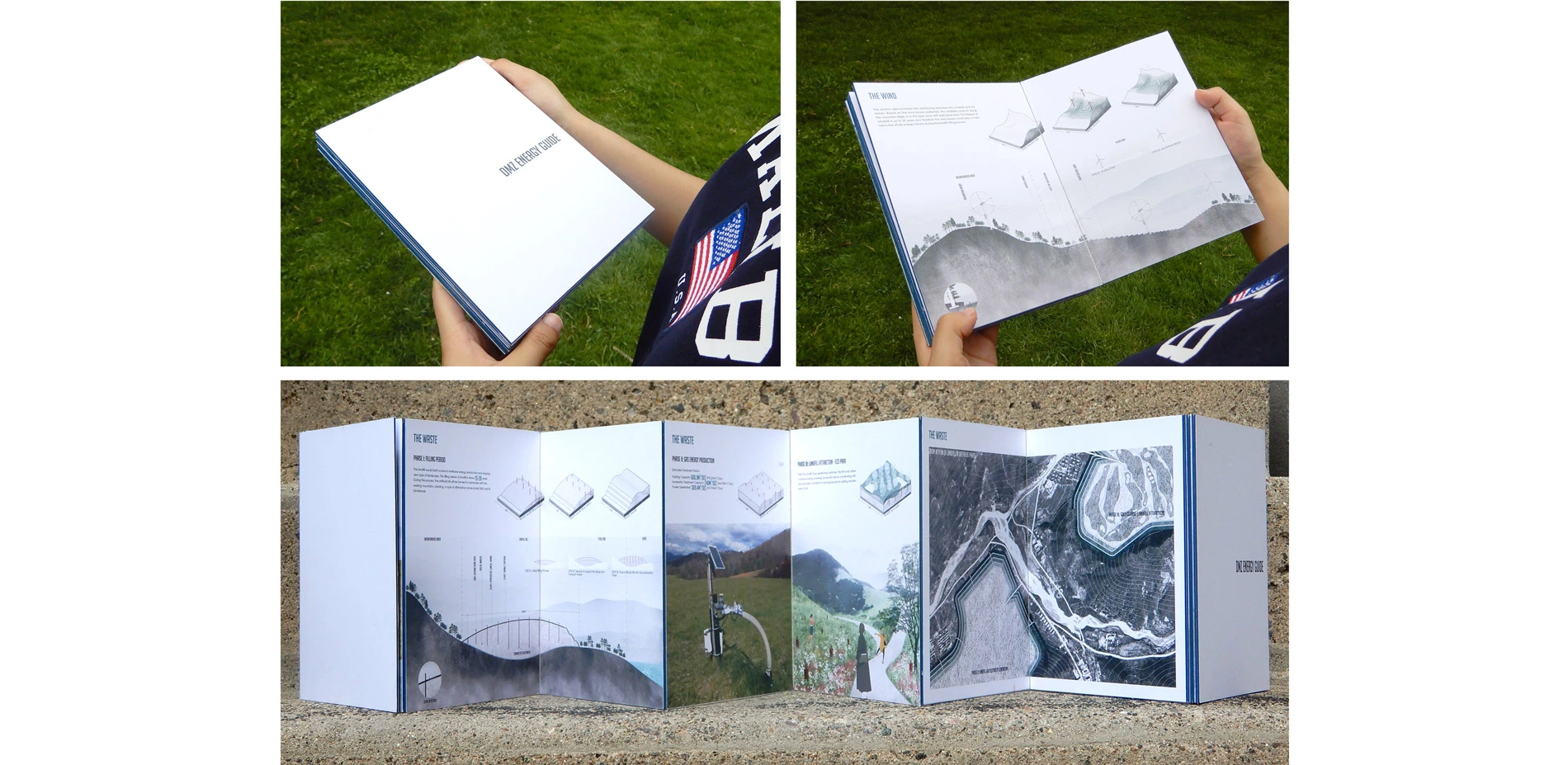 DMZ Energy Guide: Seen from satellite night images, there is a clear boundary of darkness and light, lack of energy and abundant energy inside the Korean peninsula dividing North and South Korea. As an essential factor affecting urban development, the need for reliable and affordable energy is a fundamental part of the reunification of the two Koreas. Currently close to the DMZ, there is a series of hydroelectric facilities on the North, some of which are seen as threats by the South because of the potential dam breaching/flood-‐water attack and the influence on water inflow to downstream. To reunify the Korean peninsula from the perspective of energy, the proposal of this book is to remove the threatening dams, restore local water system and develop other types of energy by using municipal waste, wind, and solar power to achieve a sustainable future. During this process, the energy production industry will be involved in providing new types of basic natural energy and their resulting shaping of land and resources. 'Energy Valleys' with artificial infrastructures like landfill hills and wind-‐farms will form new types of landscape and bring new opportunities to the DMZ and its hinterland.