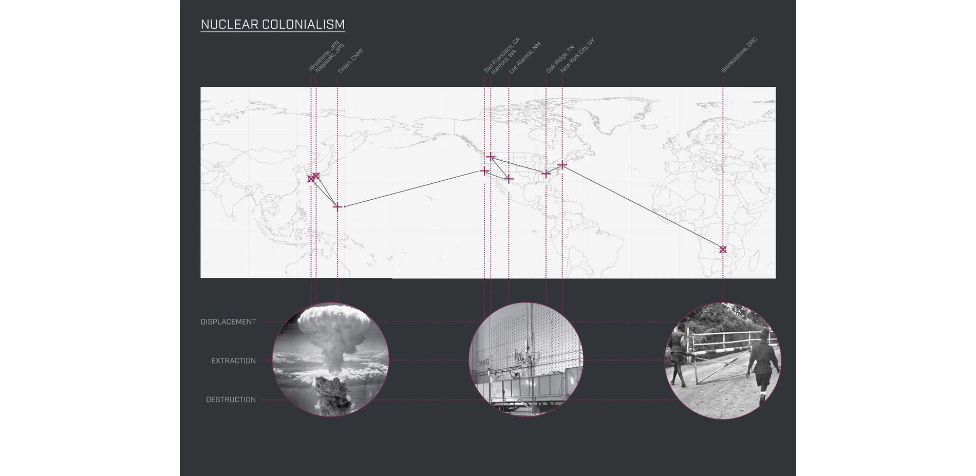 Nuclear waste represents ongoing violence whose toxicity and capacity to change bodies and ecosystems persists throughout its radioactive lifespan. Combined with its capacity to eschew political boundaries and confound our attempts at containment, nuclear waste realizes a problem whose consequences will be experienced for generations to come requiring concerted engagement. Instead of recognizing nuclear waste as a purely technical problem requiring rigidly optimized solutions, this project argues for connection to the scale of nuclear waste and violence through design interventions that spatialize the waste containment process.