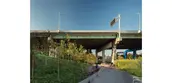 Looking forward, the project is set to grow with a series of future openings. In 2019, the Bentway pedestrian and cycling bridge (now completed design and funded to proceed) is set to start taking shape under the Gardiner and over Fort York Boulevard to the east of the currently completed project phases, connecting a series of privately owned but publicly accessible parcels under the Gardiner Expressway. The novel design of the bridge, constructed from an innovative fiberglass-encapsulated glulam timber system, harnesses the excess structural capacity of the expressway structure to suspend the bridge under the Gardiner via demountable friction-collars from the existing columns. The skating trail is planned to expand to create a 1km-long skating loop connecting the Fort York Visitor Centre and Fort York Library, resulting in the largest and most unique skating experience in the heart of Canada's largest city.