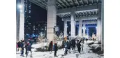 A signature component of the first phase of the project is a 220m winter skating trail which follows this shoreline and becomes a path with a children's splash park in the summer, expanding the meaning and experience of this forgotten trace of the city. Since Torontonians intimately understand how the rhythm of urban life changes with the seasons, the skating trail is central to an idea about working with winter and seeing the possibilities inherent in the Gardiner overhead structure with its weather protection against Toronto's northern climate.