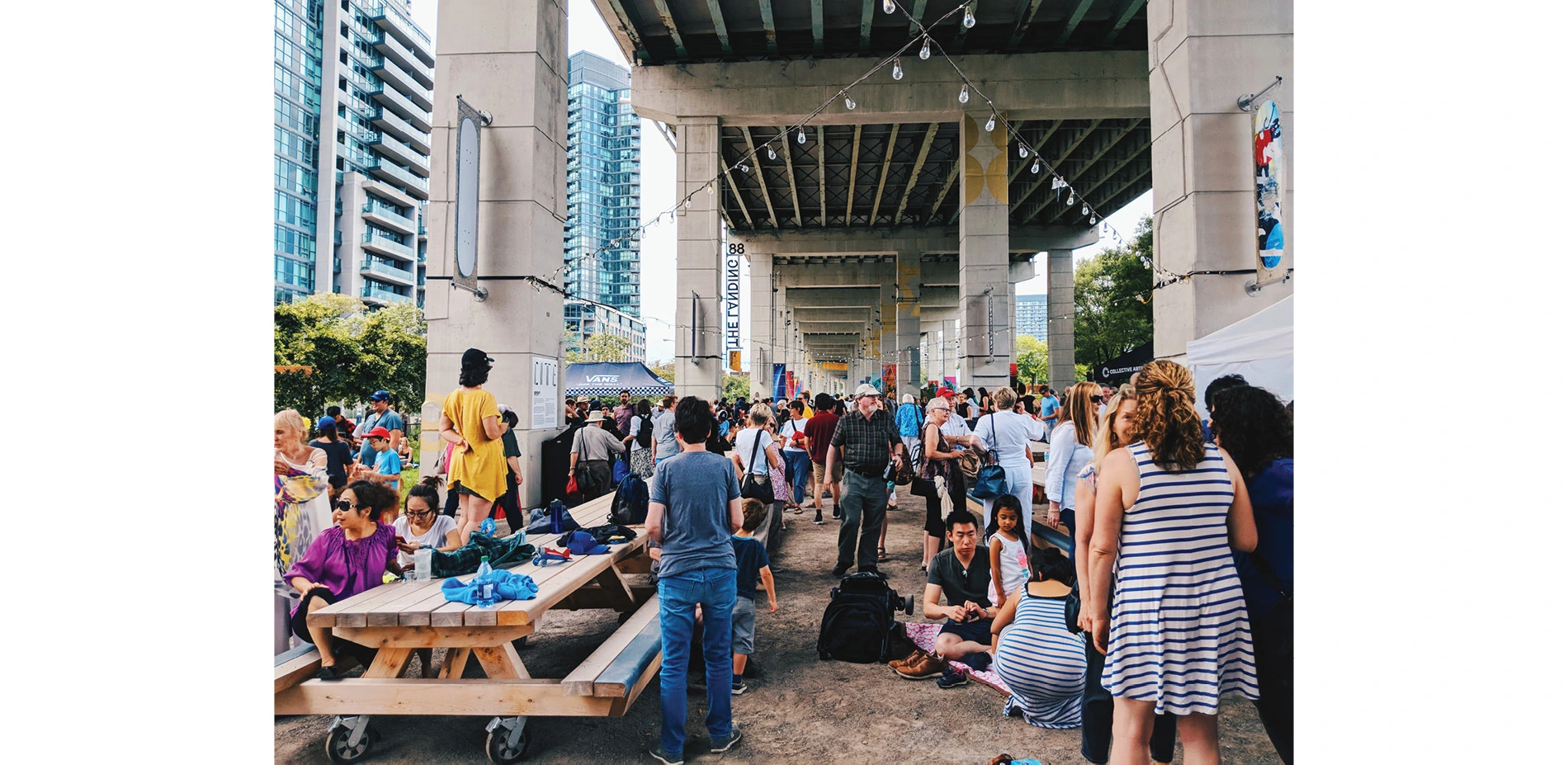 The Bentway combines the ordinary with the extraordinary to provide new and evolving platforms for public life. A conceptual framework was launched to the public in November 2015 which served as a starting point for an extensive two-year community engagement process to unfold, aiming to fuse public space design with community programming. Members of the public, alongside community groups and organizations representing sport, recreation, arts and culture, and entertainment were invited to help develop this vision by answering the question: "What could only happen here?" Participation through social media, the project website, public meetings, on-site walking workshops, a naming campaign and other special events focused on reclaiming these new spaces as highly-flexible multi-purpose spaces, acting as containers for Torontonians' creativity and culture.