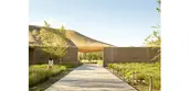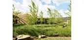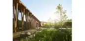 Receiving an average of eight inches of rain per year, the site accommodates sustainable water use. All stormwater is collected and infiltrated onsite, reducing irrigation demand for the plant materials. Irrigation water is from non-potable sources. Soils and stones are from onsite or nearby local sources. Native species selected from the nearby riparian corridor and the surrounding hillsides improve habitat and require little water. The layout is evocative of both natural patterns and the ordered row planting of the site's agricultural past. Strategically placed trees, more densely planted on the south side, and the agricultural shade structure reduce the heat island effect.