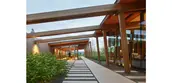 A wood-planked walkway, the main entry and exit point, bisects the courtyard and peels back the berm giving those leaving the site magnificent views of the distant hills and the gap through which the Yakima River passes. The entry walk is elevated slightly above the adjacent landscape giving the impression of a boardwalk, strengthening the riparian feel of the landscape. Floor to ceiling windows flood the interior with views, ensuring everyone visual access to nature and light.