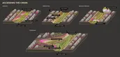 The channel and its levee infrastructure also impact local communities, separating wealthy, middle income, and disadvantaged communities in the large and diverse suburbs of Fremont, Union City, and Newark. While the levee trails are popular, people are isolated to the upper edge, not able to access the water, cross the creek, or participate in the changing system of the creek. We propose four types of public access: Mudrooms, Floodrooms, Terrace Trails, and Seasonal Bridges. Each can respond to flooding events, with managed access during the winter season.
